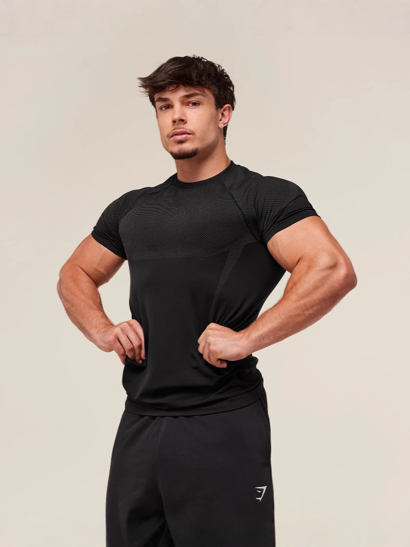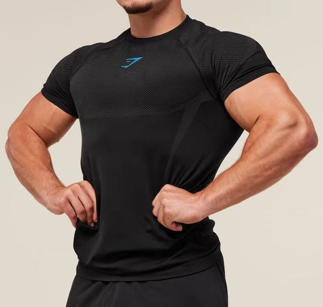 Главная страница > Amazon внешняя торговля мужские короткие рукава GYM спортивный фитнес-тренировочный костюм эластичная модная футболка с круглым вырезом