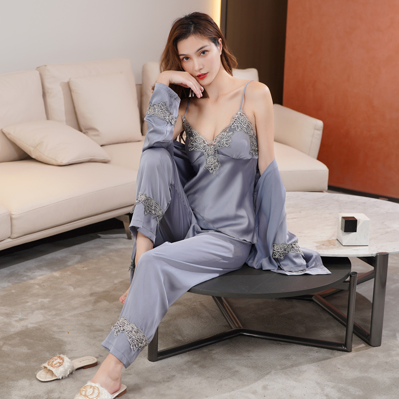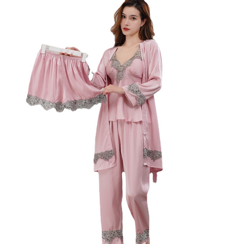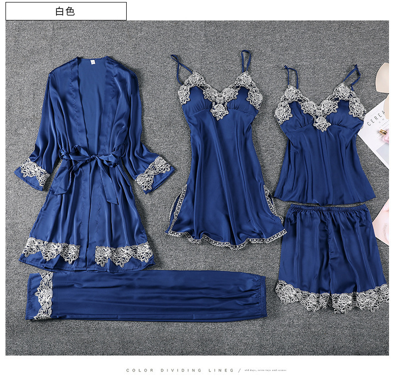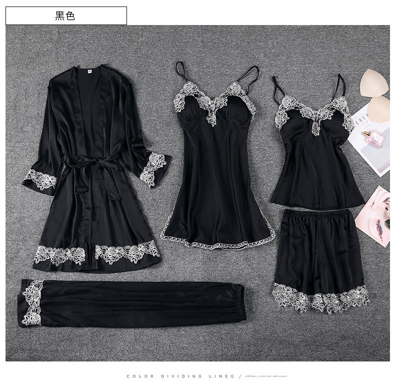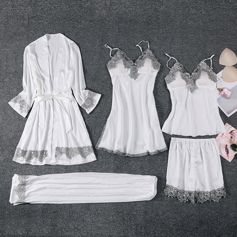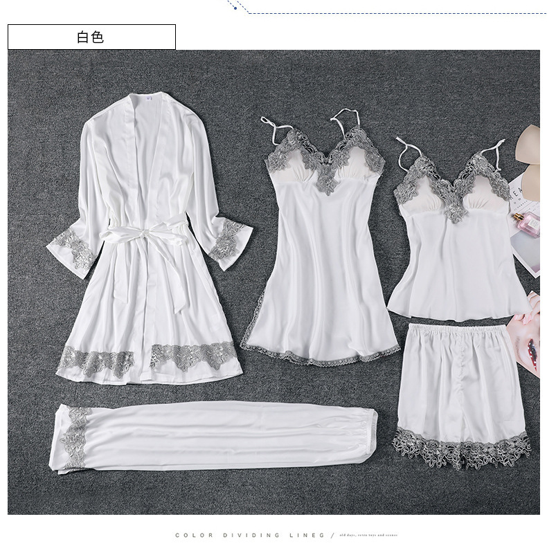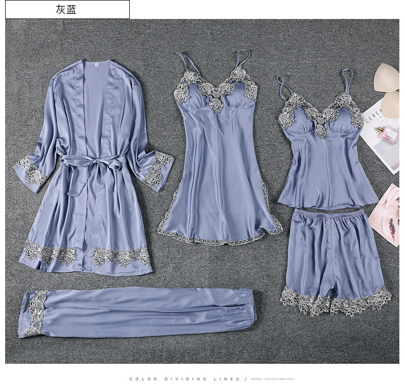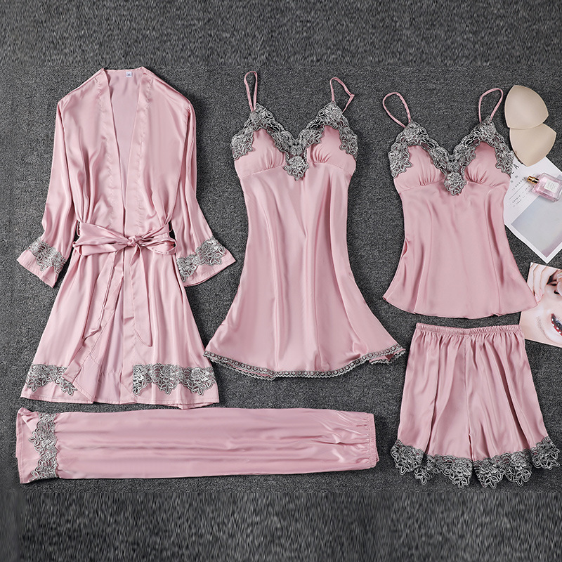 Главная страница > Пижама женская весна-лето-осень комплект из пяти предметов Сексуальная кружевная ночная рубашка из ледяного шелка на лямках ночная рубашка халат с нагрудной подкладкой шелковая домашняя одежда