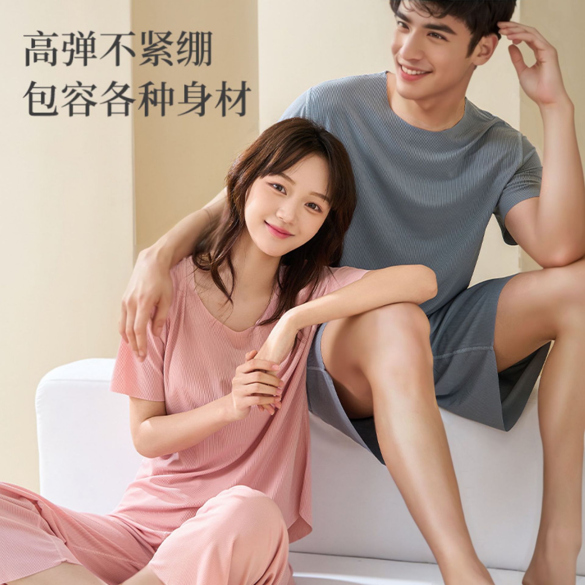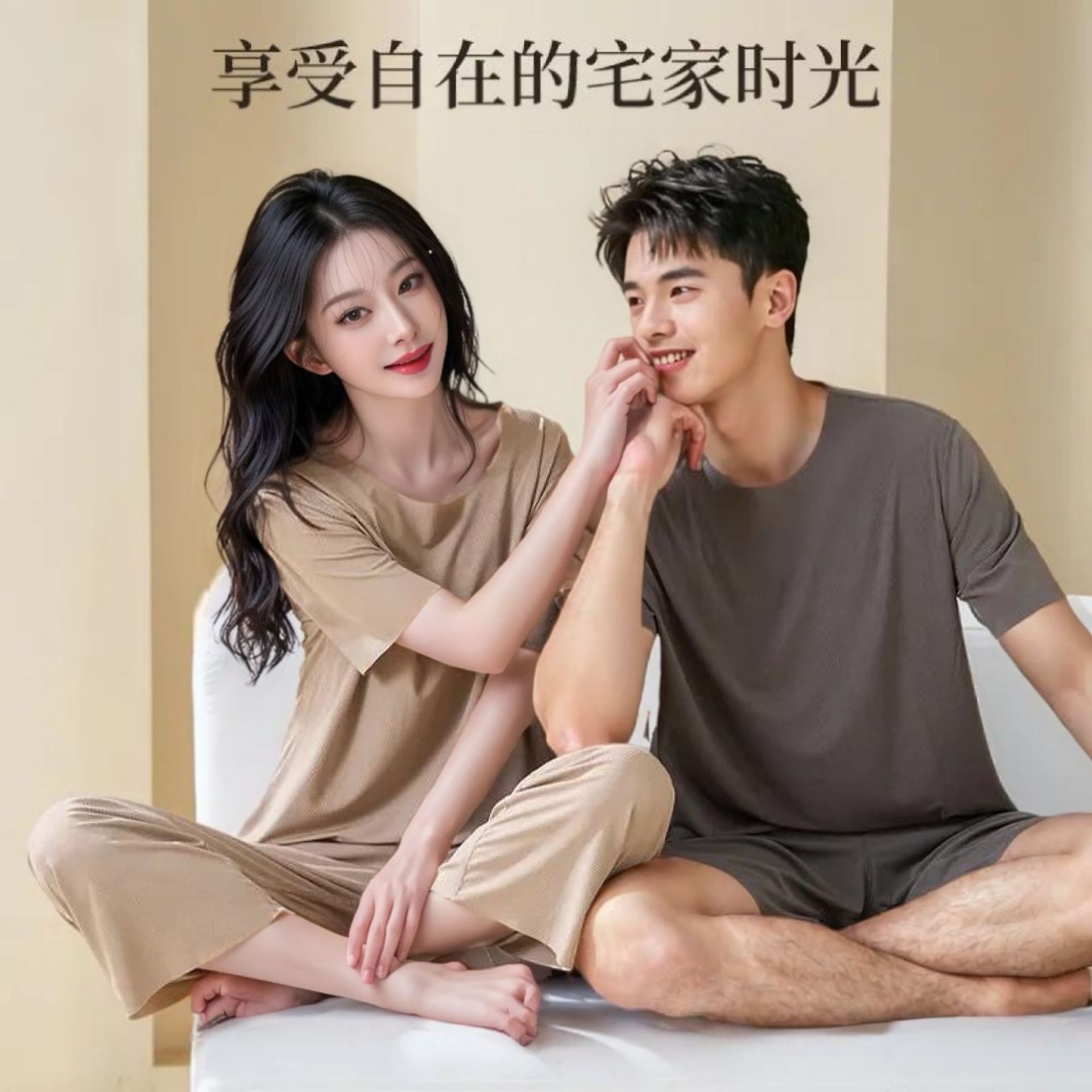 Главная страница > Домашняя одежда, женские летние пары, мужские шелковые пижамы с короткими рукавами, простые бесшовные однотонные пижамы, оптовая продажа
