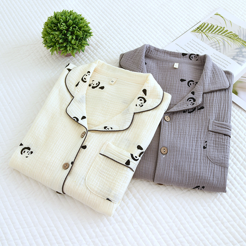 Оптовая Продажа с фабрики высокого качества пара пижамы хлопок Осень Новый женский Кардиган с длинным рукавом Мужской Хлопковый креп для дома