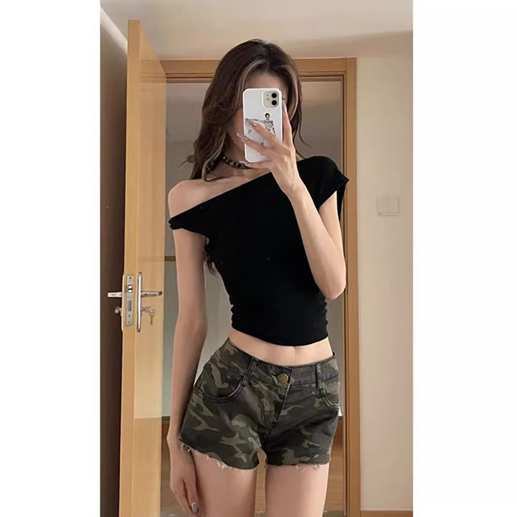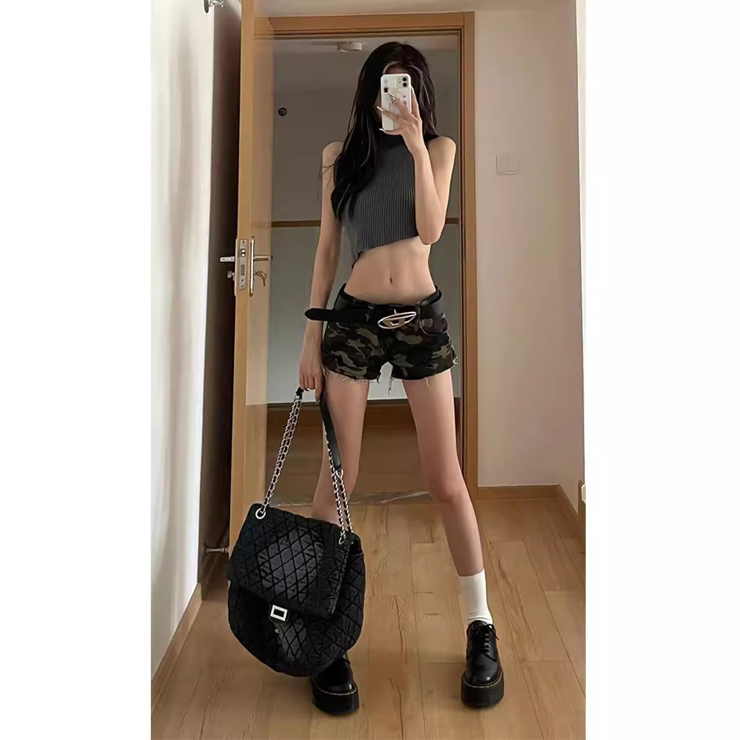 Эксклюзивные камуфляжные джинсовые шорты для женщин, новые облегающие универсальные ультракороткие прямые шорты с низкой посадкой