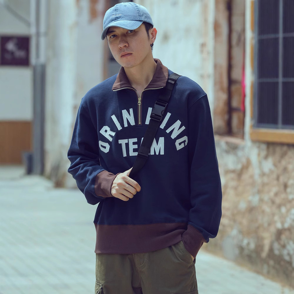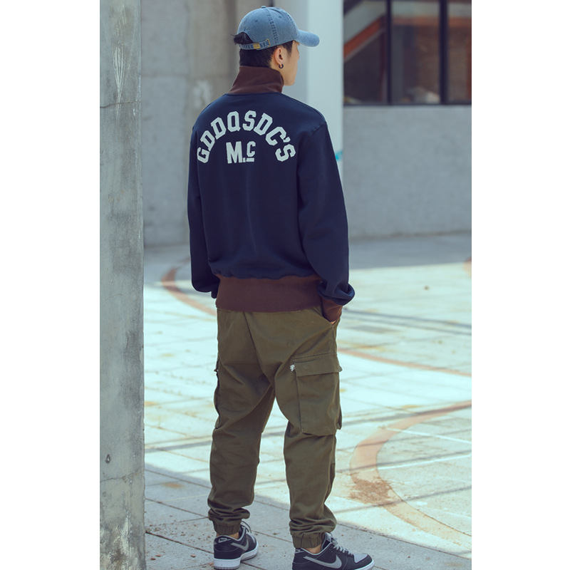 Главная страница > 580G тяжелый ретро американский бархат толстый пара вышитый буквенные пальто свободная половина молнии лацканный свитер толстый мужчина