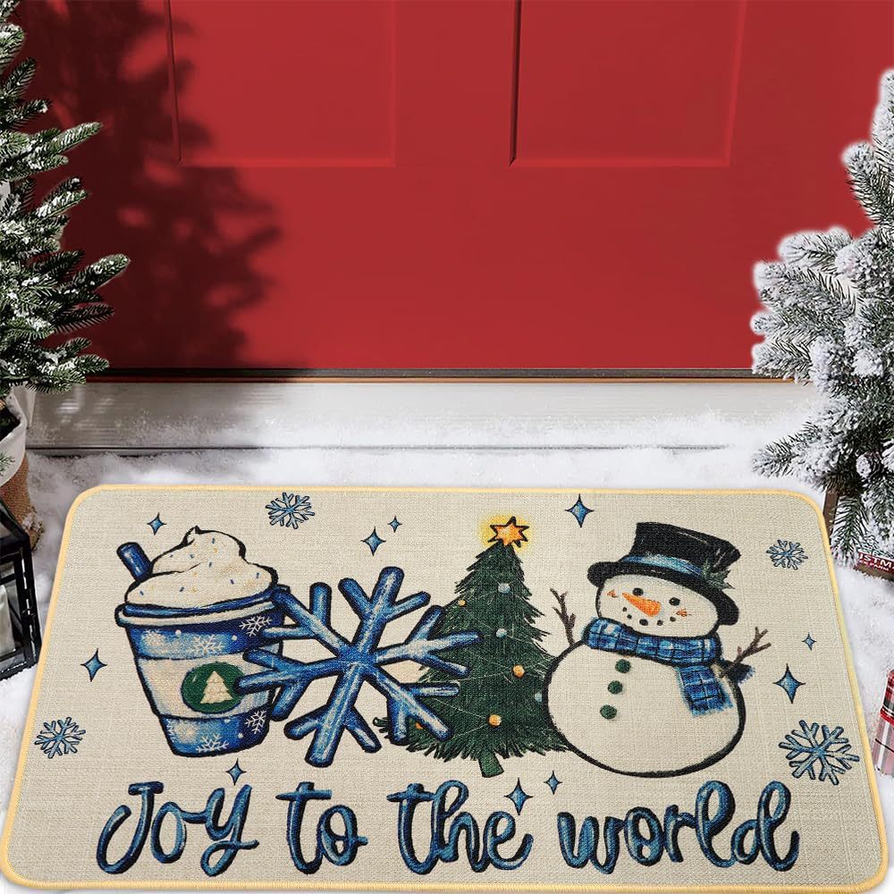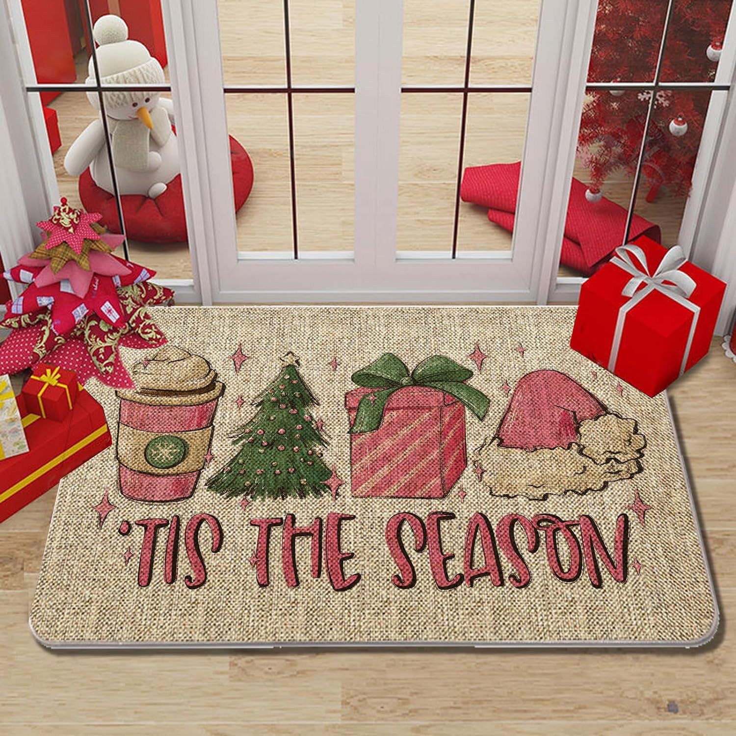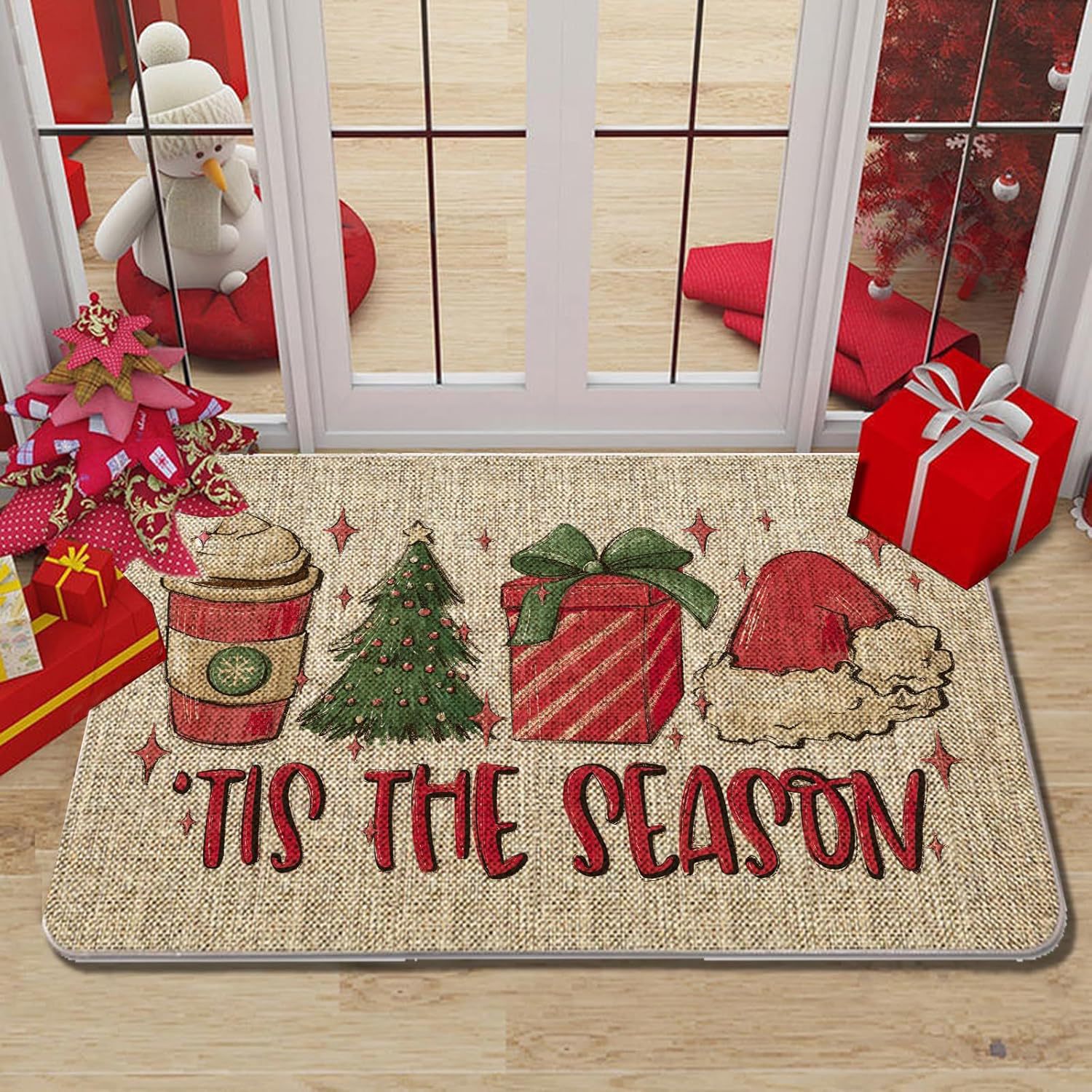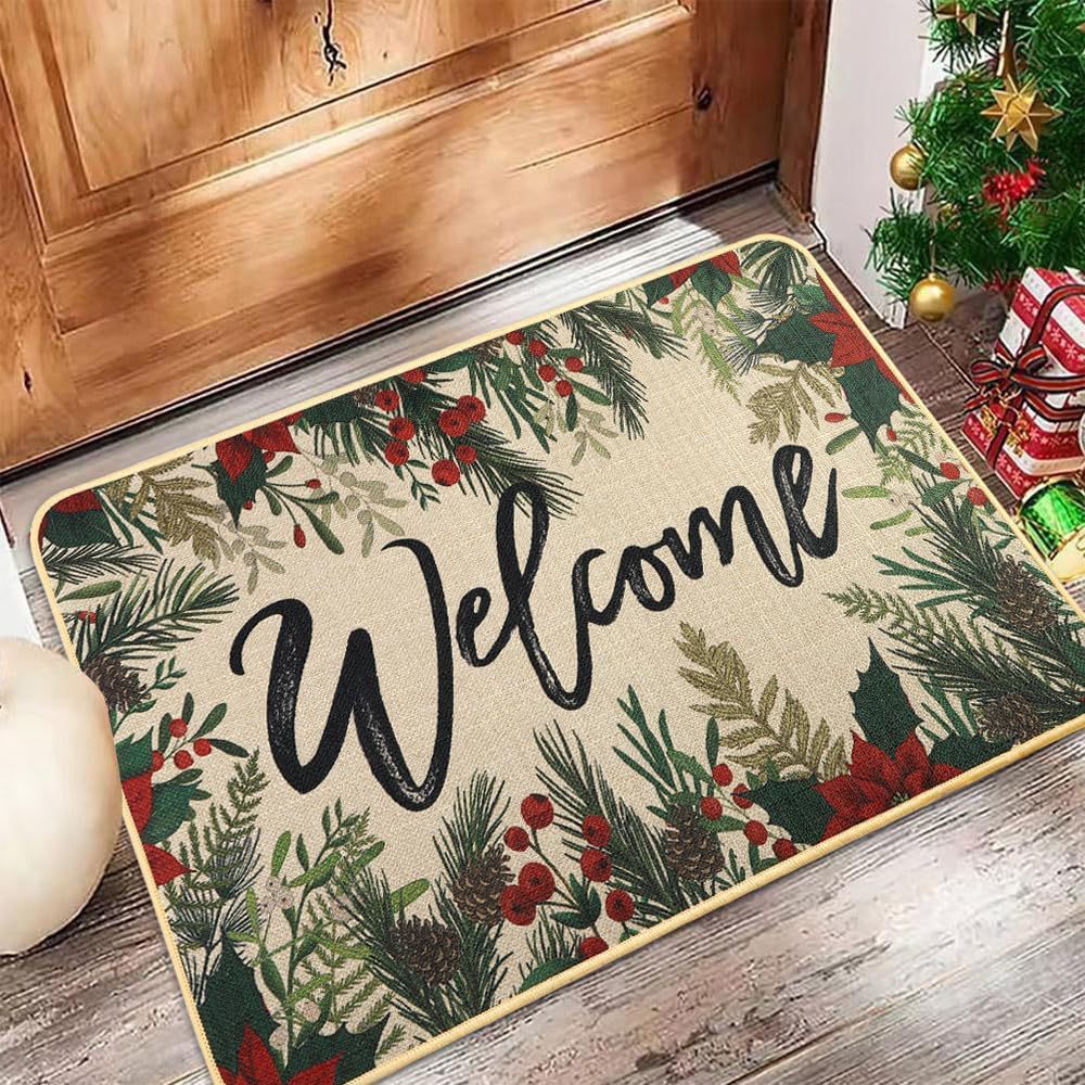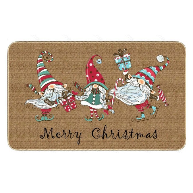 temu新款亚麻圣诞地垫入户门垫节日地毯防滑吸水浴室地垫可贴标
