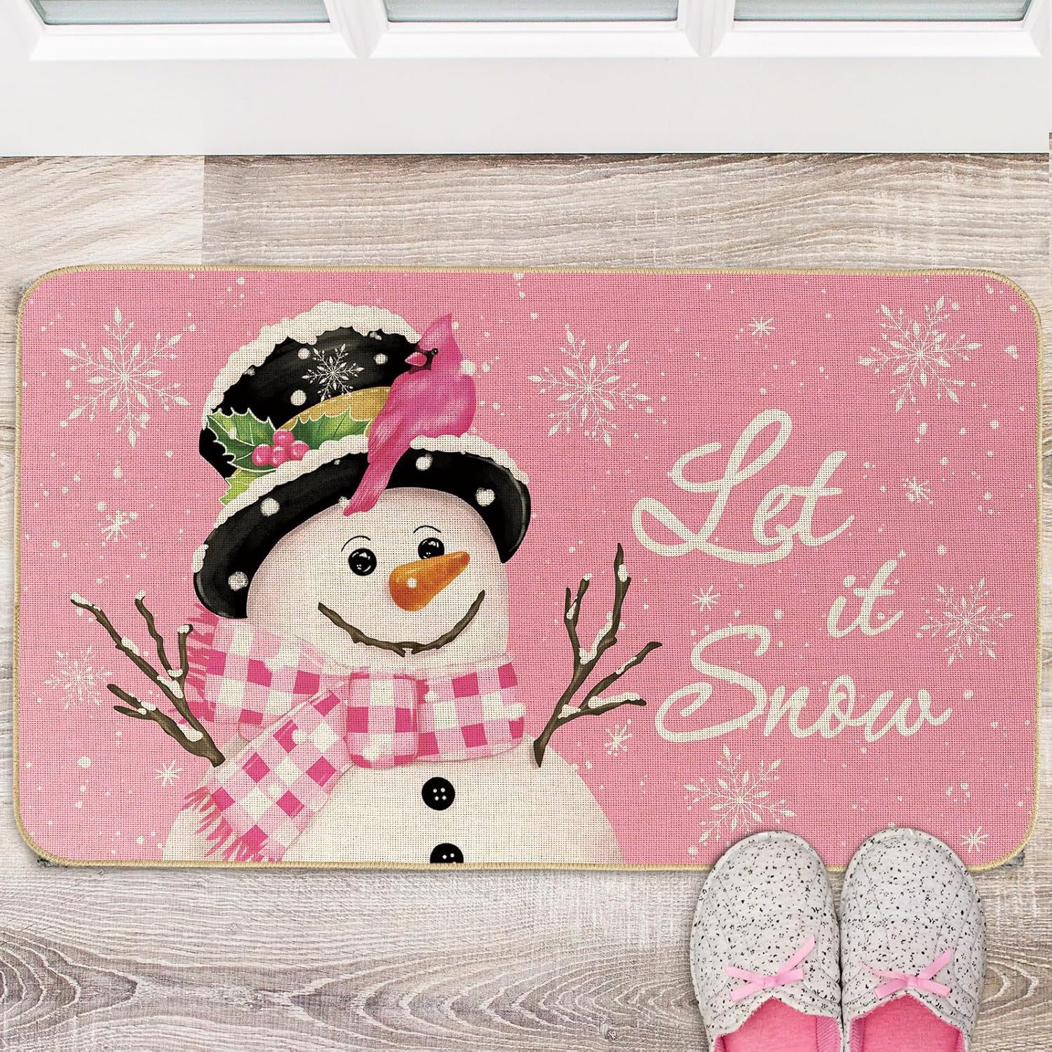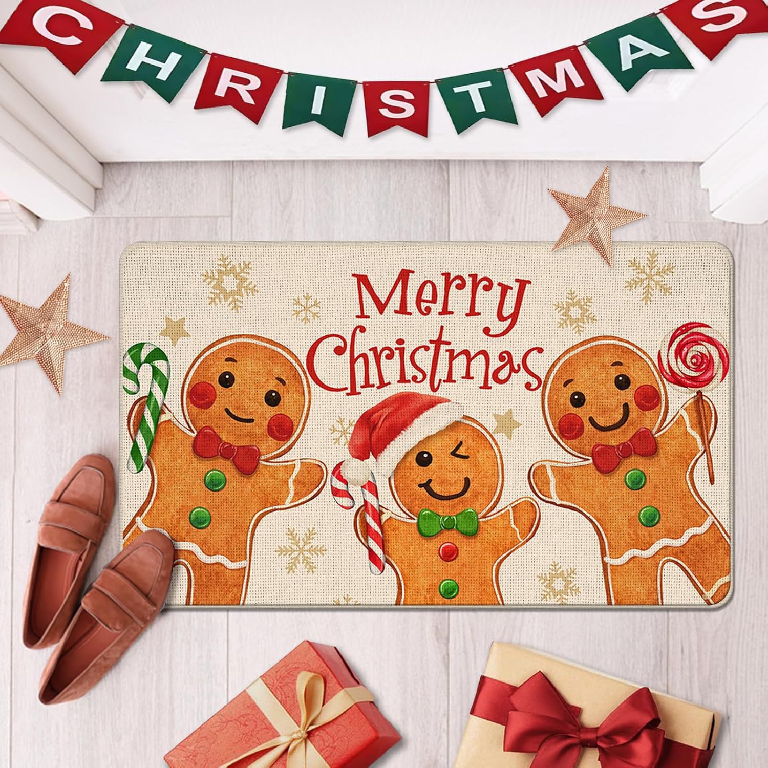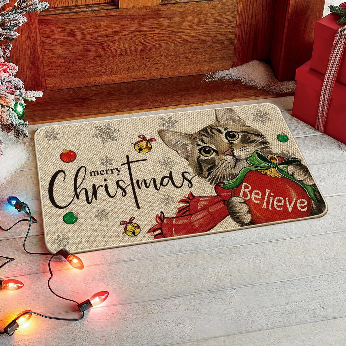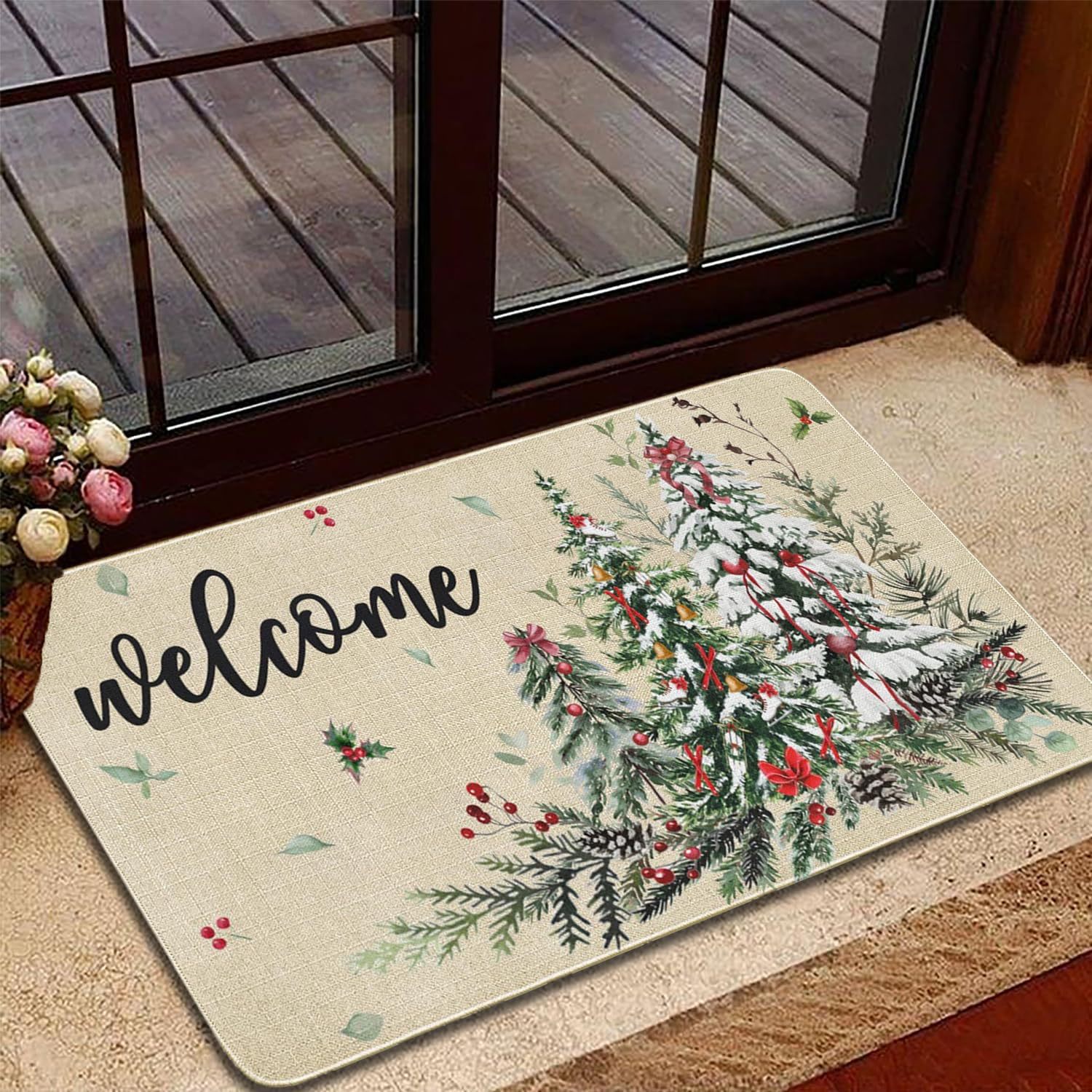 temu新款亚麻圣诞地垫入户门垫节日地毯防滑吸水浴室地垫可贴标