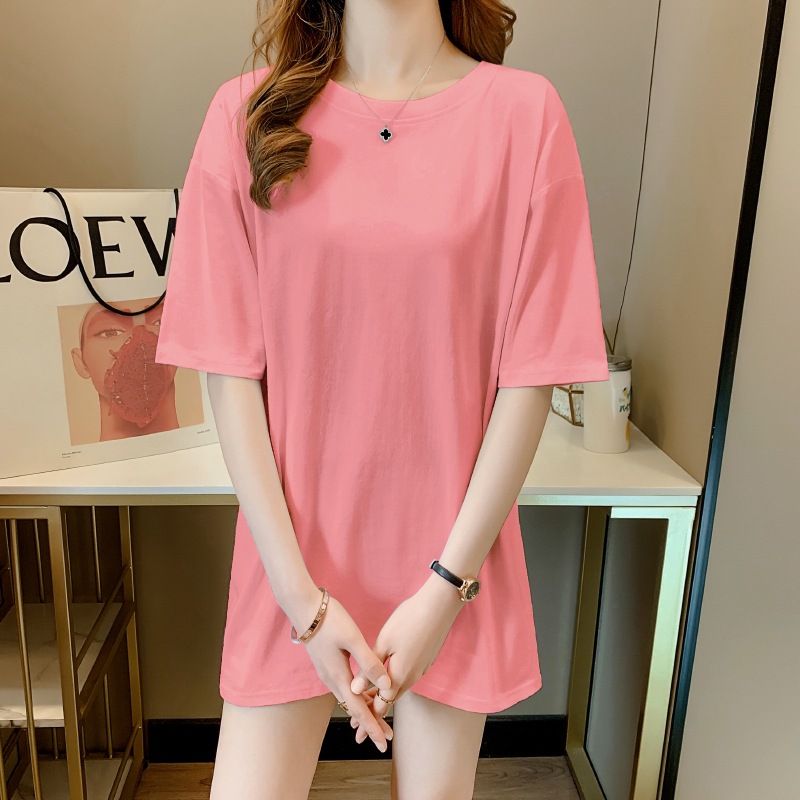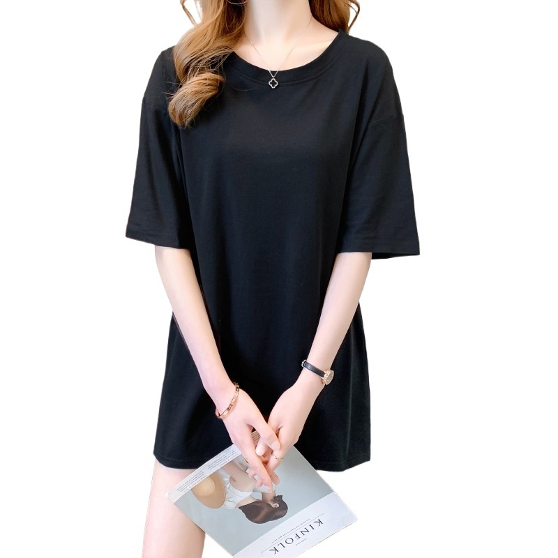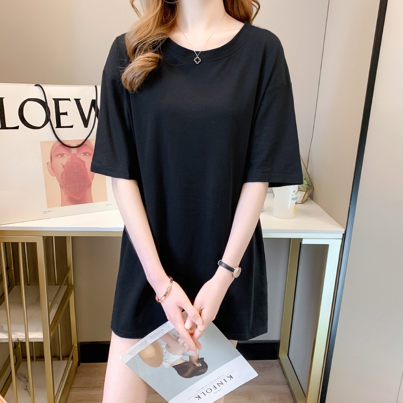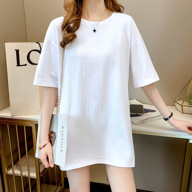 Главная страница > Универсальная летняя белая женская футболка из чистого хлопка, с короткими рукавами, закрывающая ягодицы, средней длины, свободного кроя, плотно прилегающая к телу, без верха.