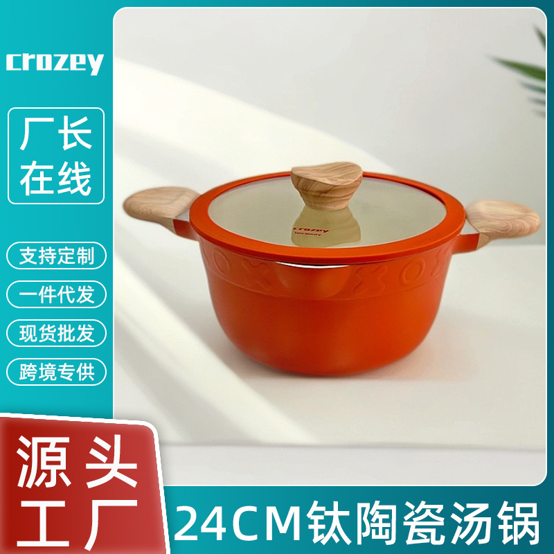 Главная страница > Титановый керамический горшок с двумя ушками диаметром 24 см для домашней жарки и приготовления пищи, каши и лапши, кастрюля с антипригарным покрытием, специальная кастрюля для супа для газовой индукционной плиты