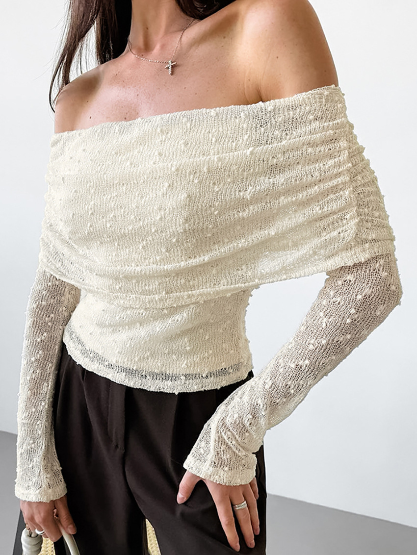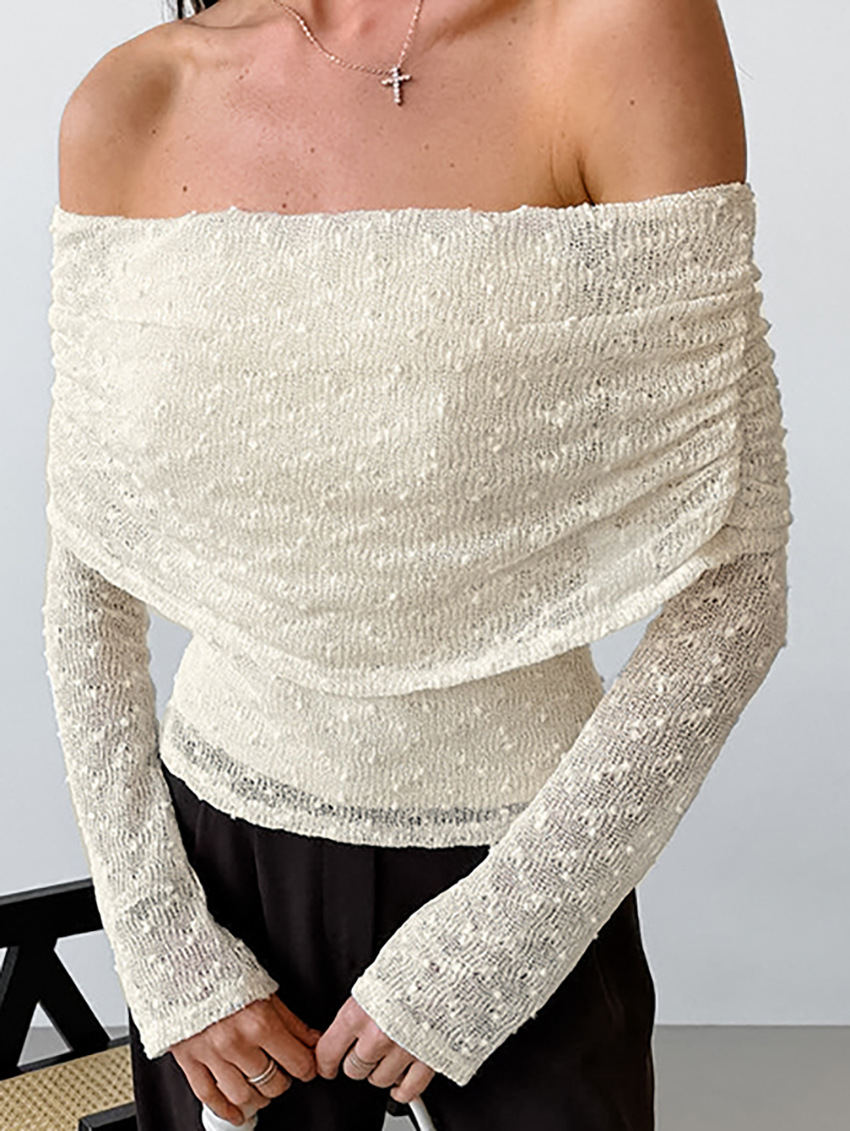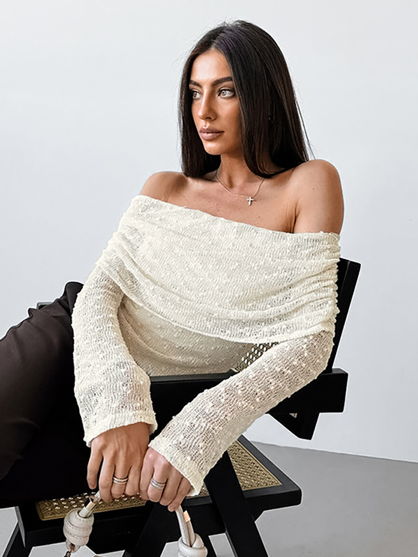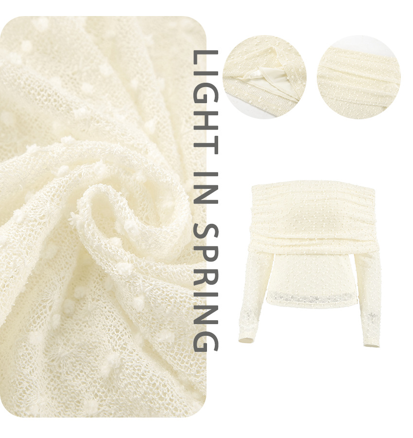Главная страница > Европейская и американская сексуальная жаккардовая трикотажная женская футболка с воротником для весны и лета 2025 новая трансграничная рубашка с длинными рукавами с открытыми плечами для женщин