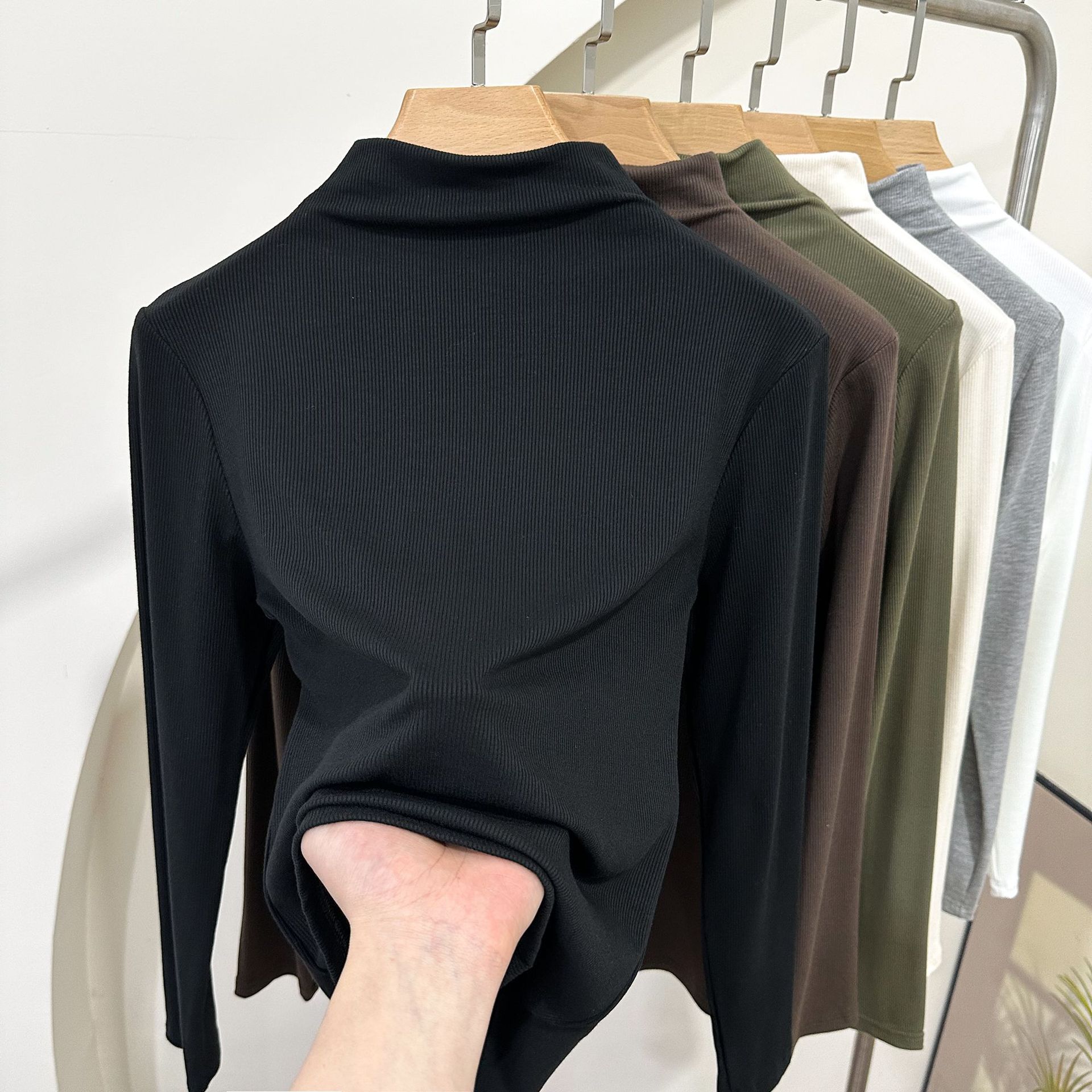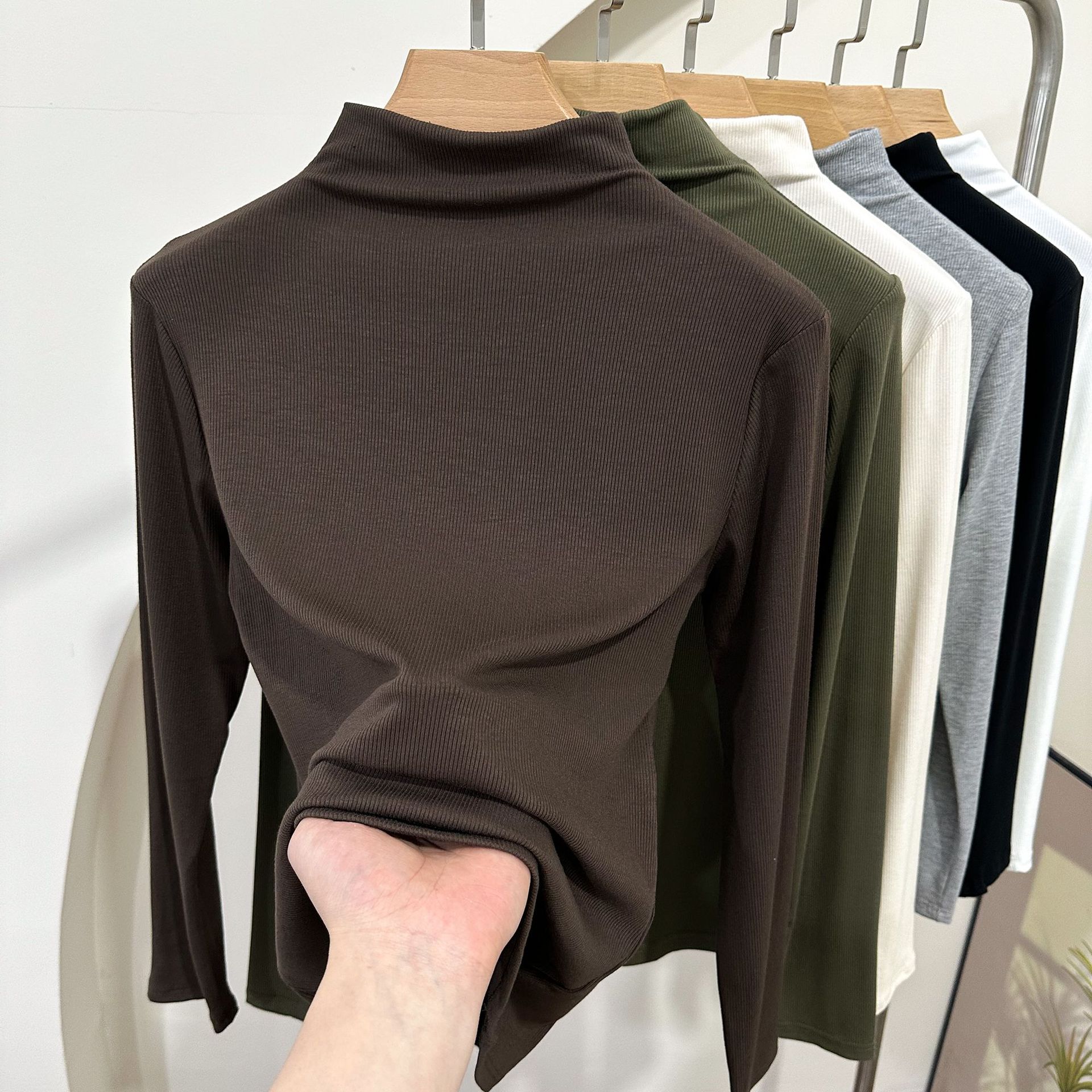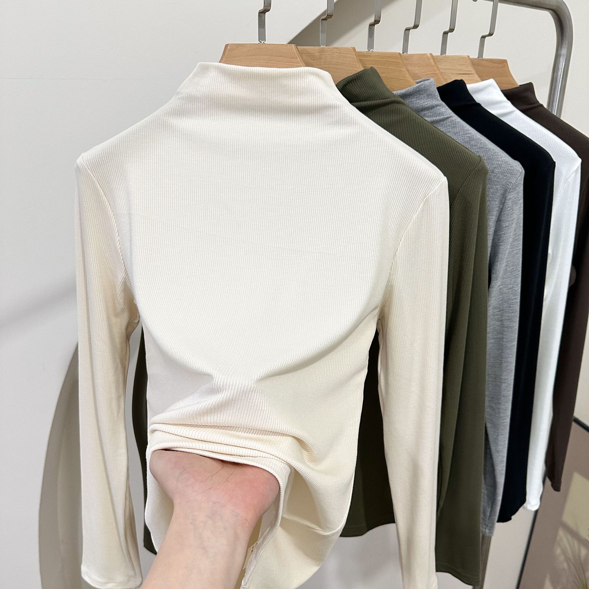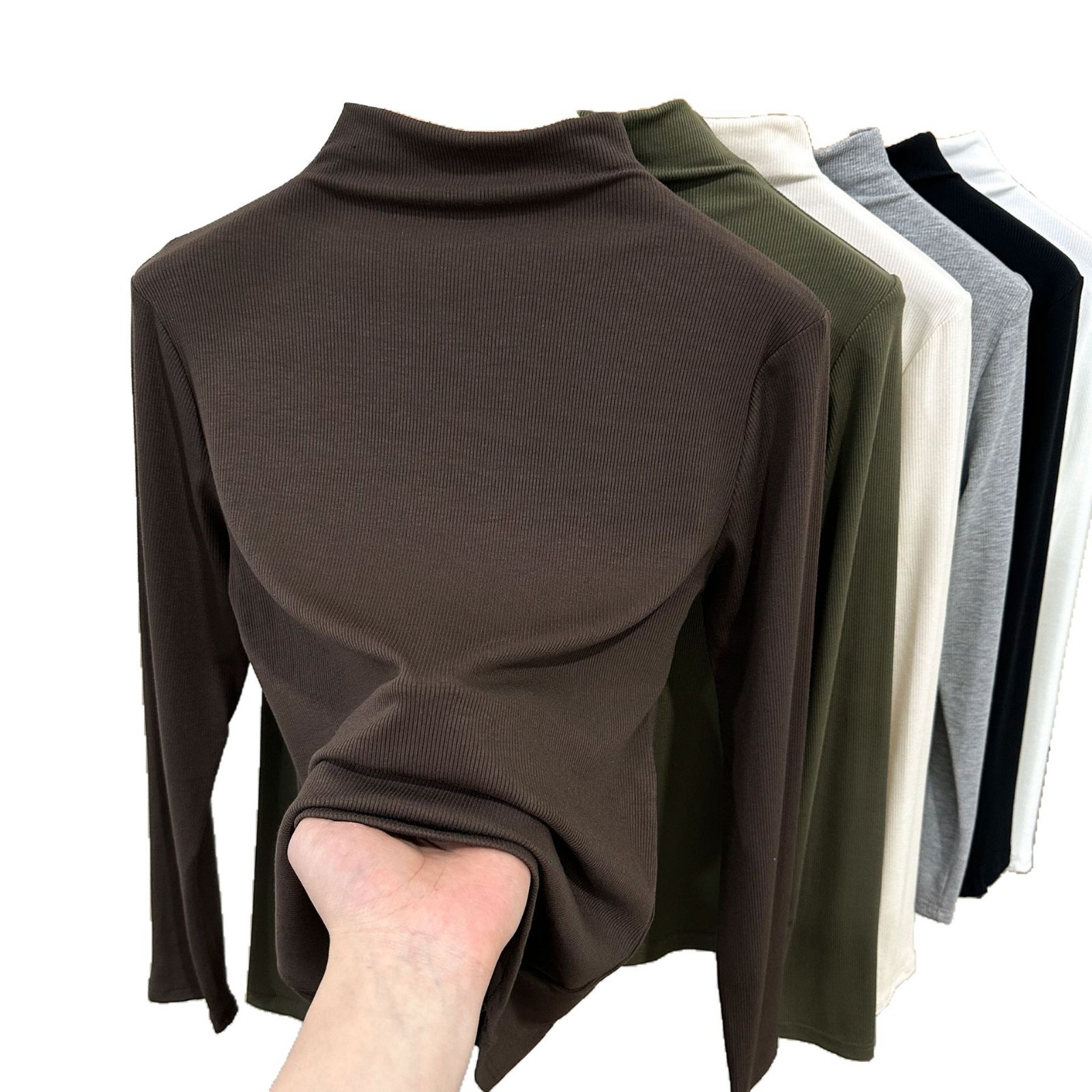 Главная страница > Весенний и летний новый резьбовой хлопок с полувысоким воротником с длинным рукавом футболка нижняя рубашка женская тонкая рубашка