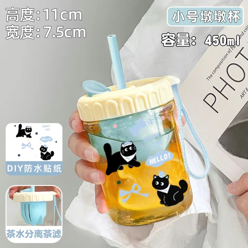 Синяя чашка Dundun + силиконовая соломинка + полезный слив для чая из полипропилена [бесплатная наклейка с маленьким черным котом]