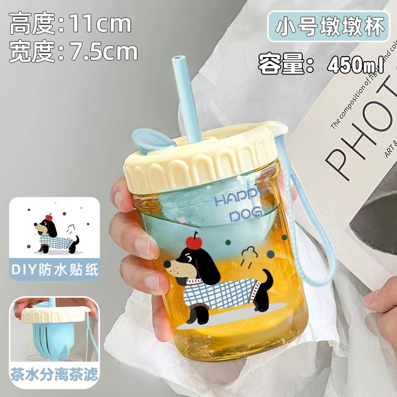 Синяя чашка Dundun + силиконовая соломинка + полезный слив для чая из полипропилена [бесплатная наклейка с маленькой черной собачкой]