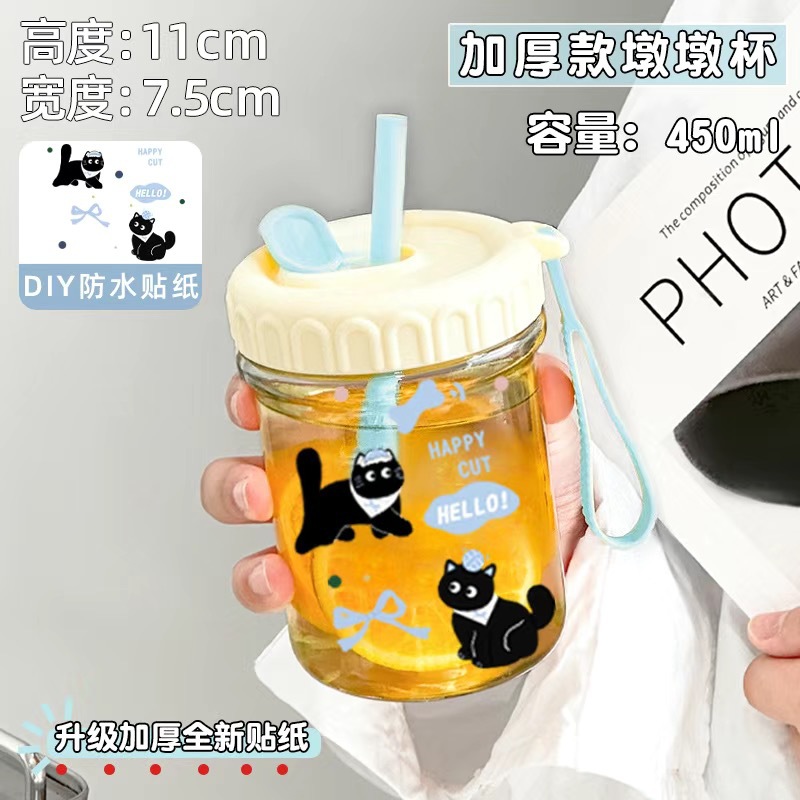 Синяя чашка Dundun + силиконовая соломинка [бесплатная наклейка с маленьким черным котом]