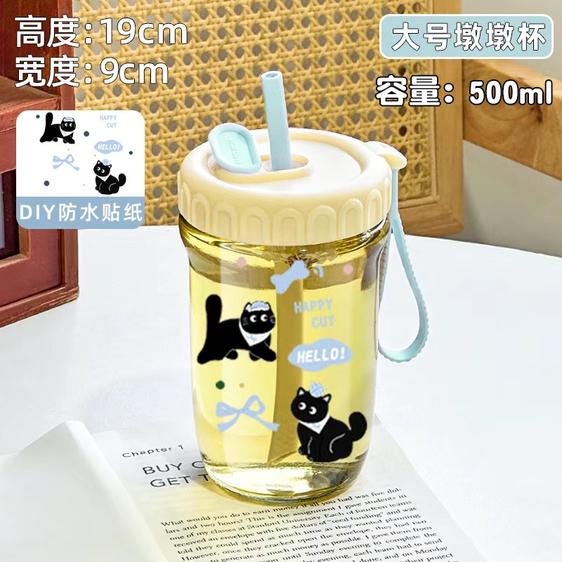 Большая синяя чашка Dundun + силиконовая соломинка [бесплатная наклейка с маленьким черным котом]