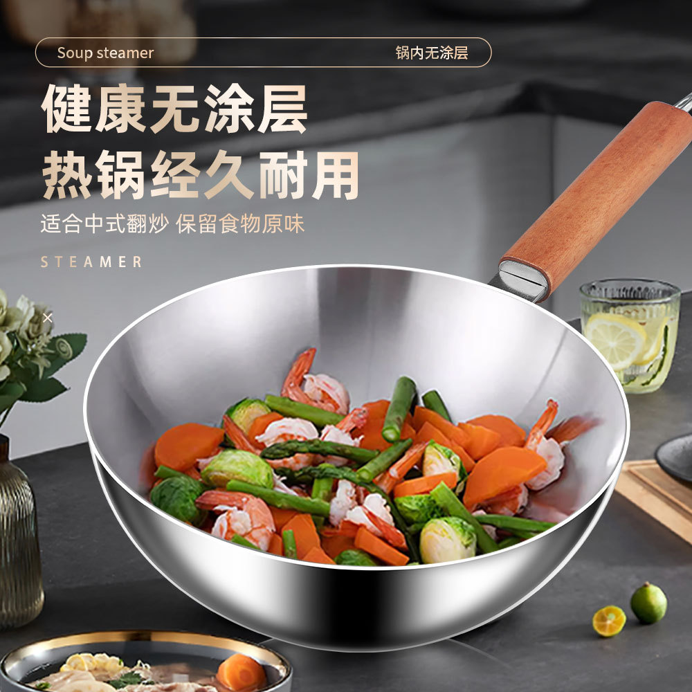 316 сковороды из нержавеющей стали Сковороды в японском стиле зеркальные деревянные ручки