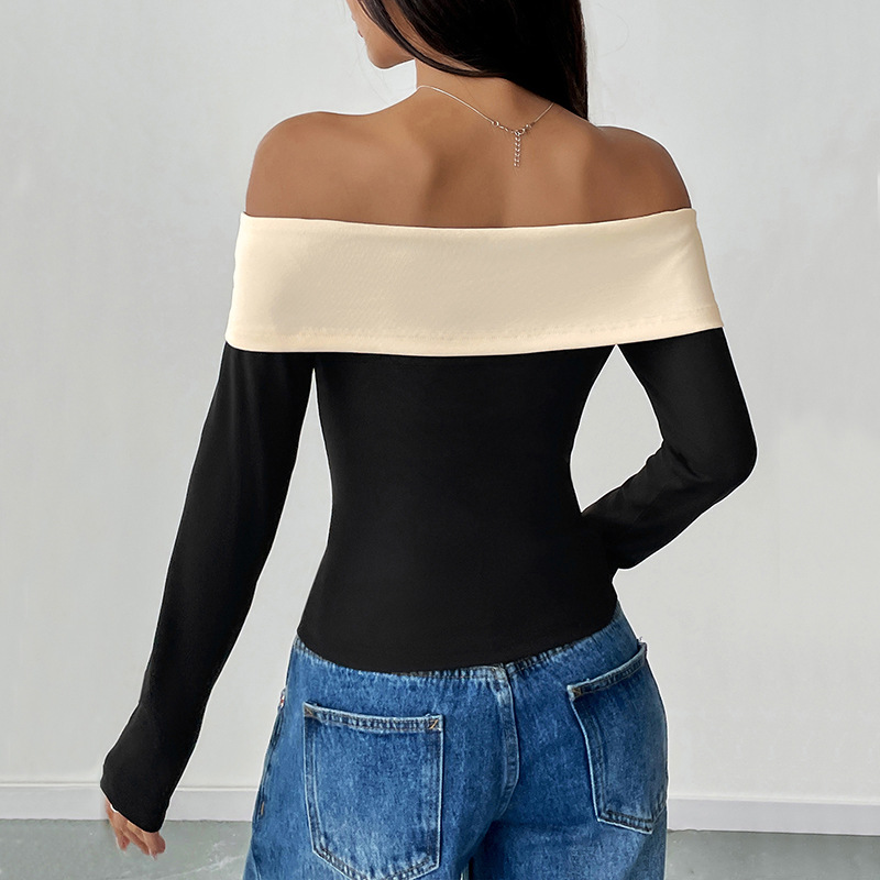 Главная страница > Женская футболка с открытым плечом, тонкая, с одним воротником, цветная, сексуальная, сладкая, с бантом, новая коллекция 2025 года, для трансграничной торговли.