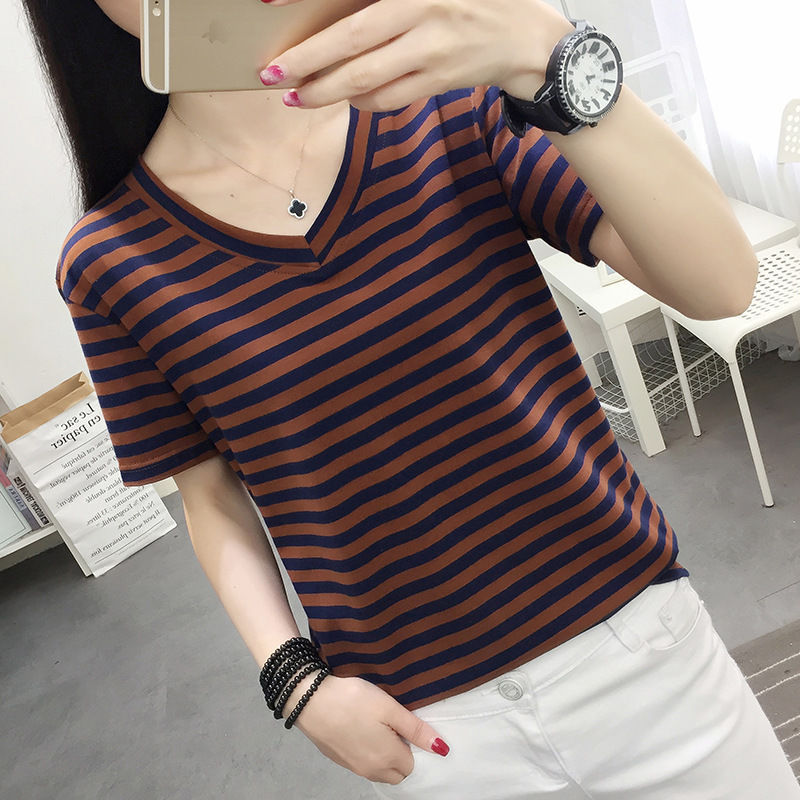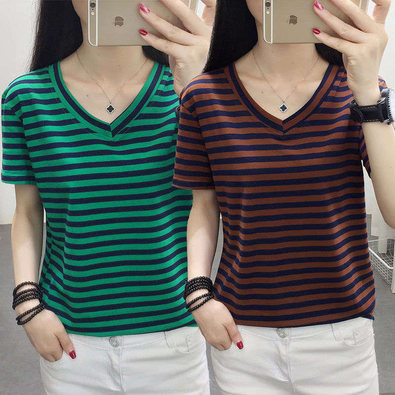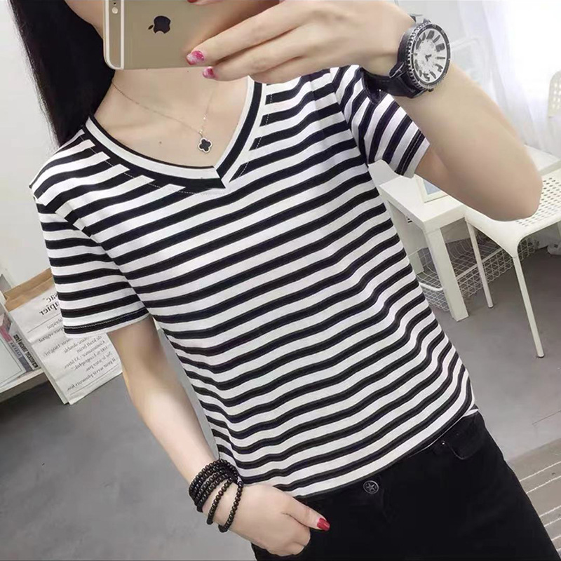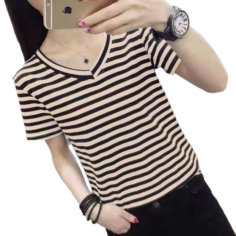 Главная страница > Трансграничная независимая станция в полоску футболка женская рубашка с короткими рукавами свободная топы