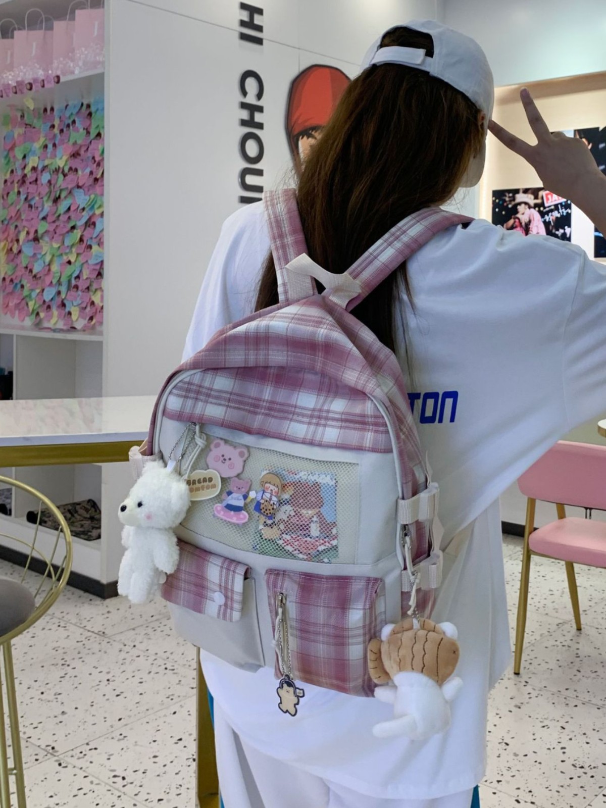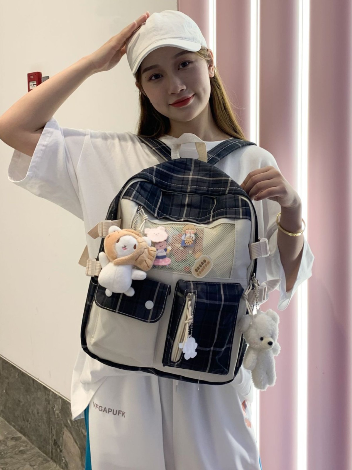 Главная страница > Школьная сумка женская в корейском стиле в стиле Харадзюку для школьников младших классов средней школы клетчатый рюкзак милый дорожный рюкзак большой вместимости
