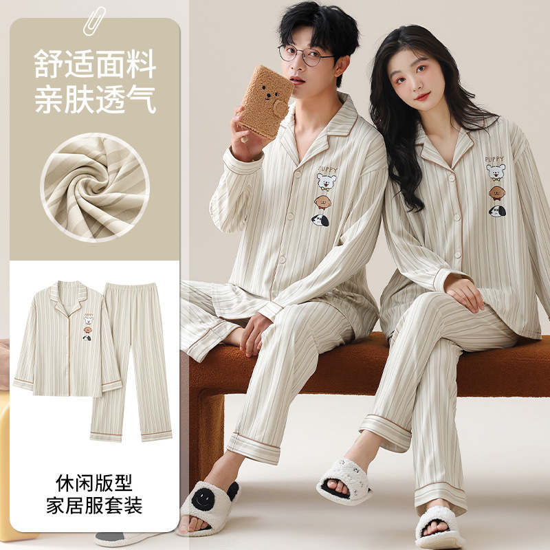 Главная страница > 100% хлопковая пара женская пижама весна и осень длинные рукава длинные брюки мужской кардиган повседневный 2024 новый хлопковый домашний костюм