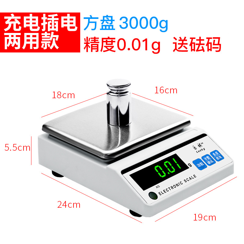 [Перезаряжаемая модель] Квадратная пластина 3 кг Точность 0,01 г Свободный вес