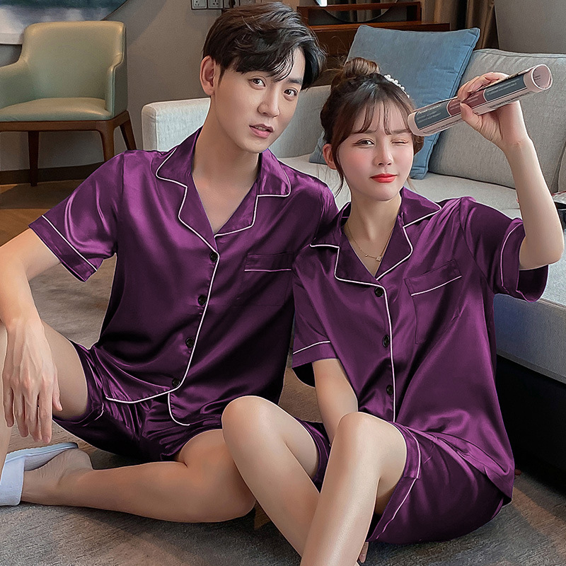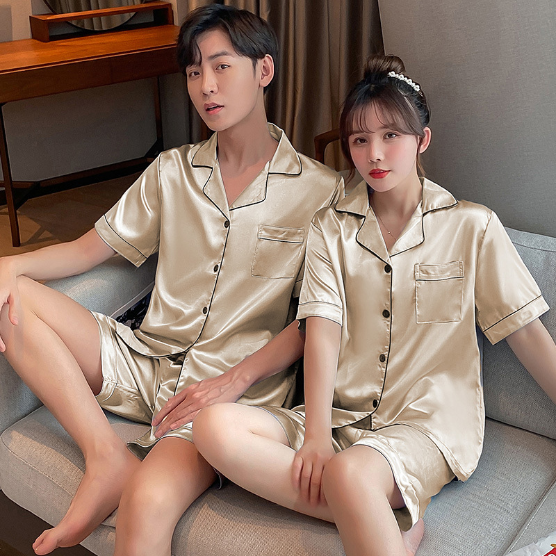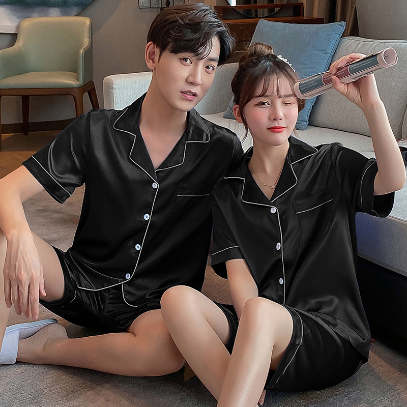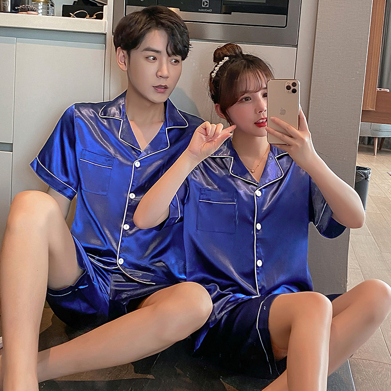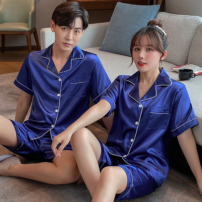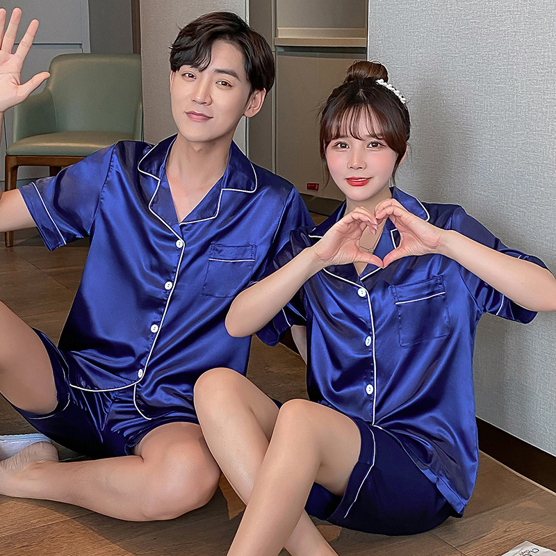 Главная страница > Пижамы для пар, шорты из искусственного шелка с короткими рукавами, женская тонкая Домашняя одежда, повседневная свободная Мужская домашняя одежда больших размеров
