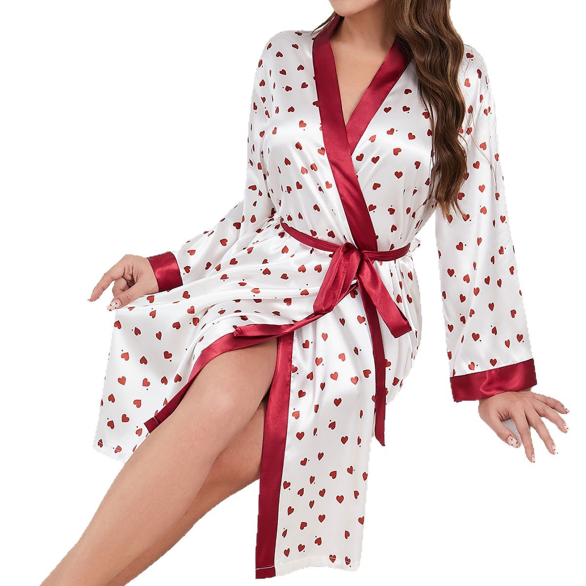 Женские пижамы больших размеров, домашняя одежда, пижамы красного цвета с сердечками, атласные повседневные и удобные.