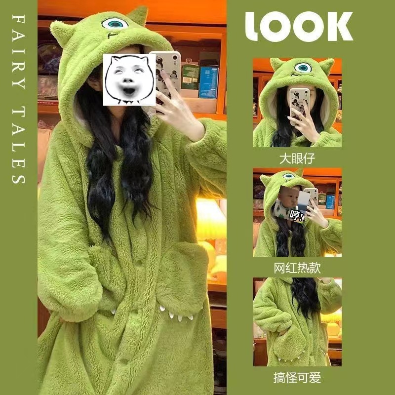 Главная страница > Симпатичная Пижама с большими глазами и капюшоном из кораллового флиса для женщин 2022 новая зимняя Монокуляр странная Ночная Рубашка домашняя одежда зима