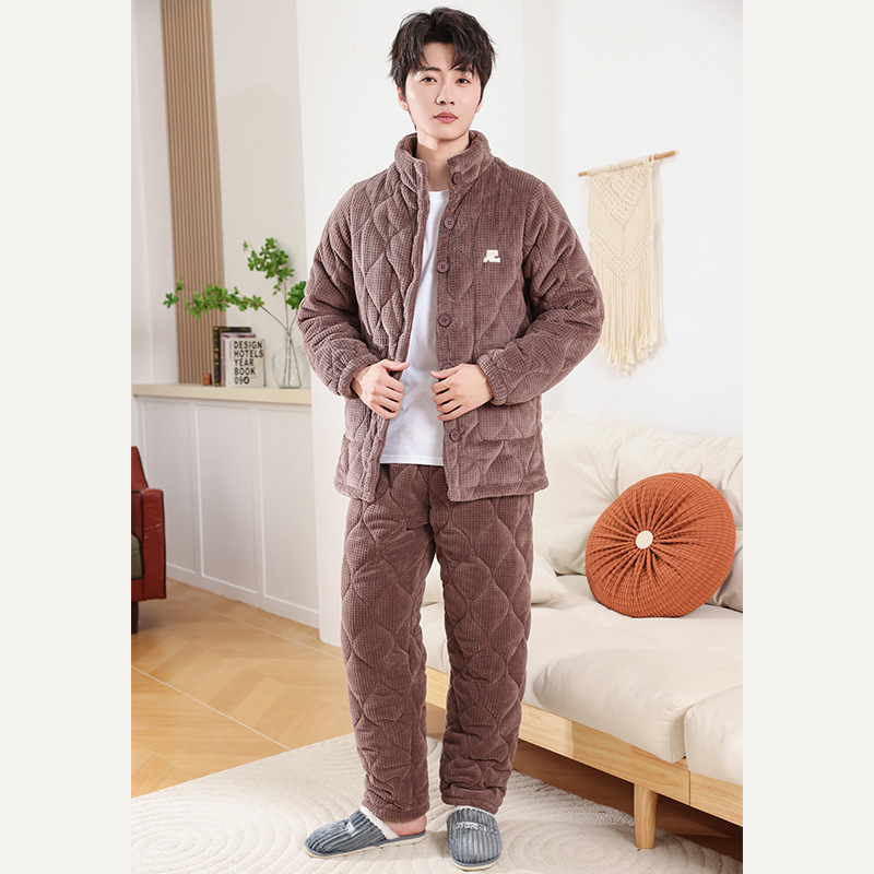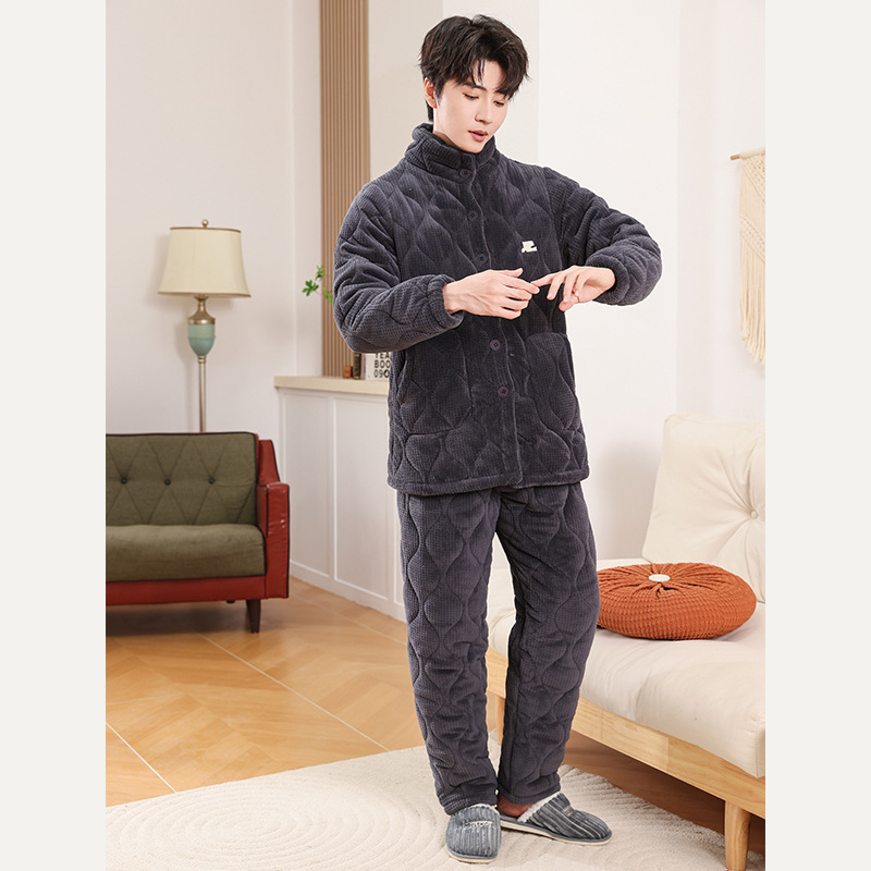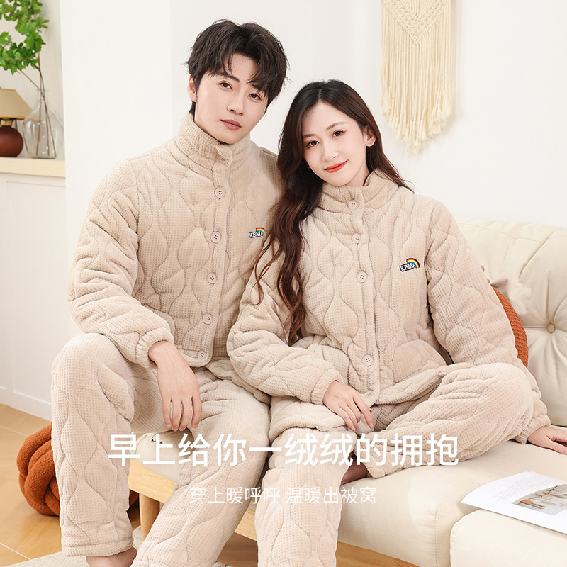 Главная страница > Новый стиль пара пижамы дамы зимняя фланель трехслойный утолщенный хлопок теплая домашняя одежда мужской повседневный набор