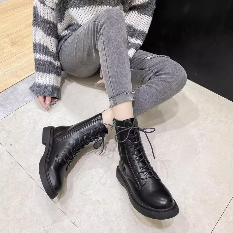 Главная страница > Ботинки Martin на флисовой подкладке в британском стиле 2023 осень-зима Новые Универсальные ботинки до середины икры Мотоциклетные ботильоны на плоской подошве на шнуровке с боковой молнией
