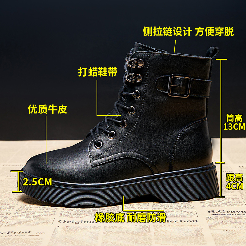 Главная страница > Женские ботинки Мартин из натуральной кожи на толстой подошве, в британском стиле, осень-зима 2025, черные, большие размеры, короткие ботинки, хлопковые сапоги с элементами из заклепок.