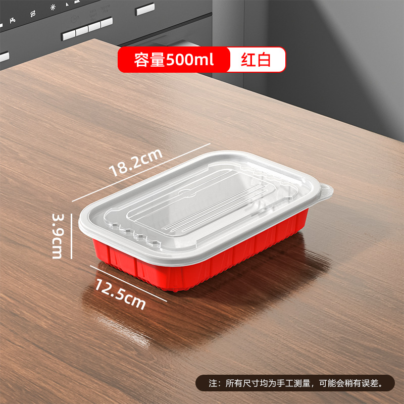 Прямоугольная форма 500, красно-белая основа + прозрачная крышка, 300 комплектов