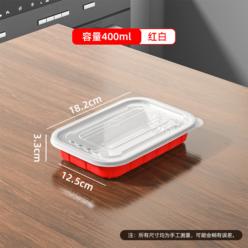 Прямоугольная форма 400, красно-белая основа + прозрачная крышка, 300 комплектов