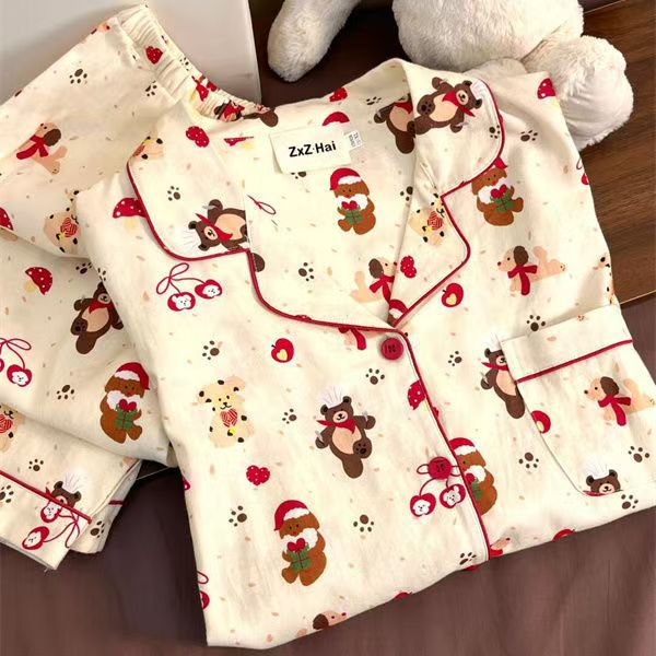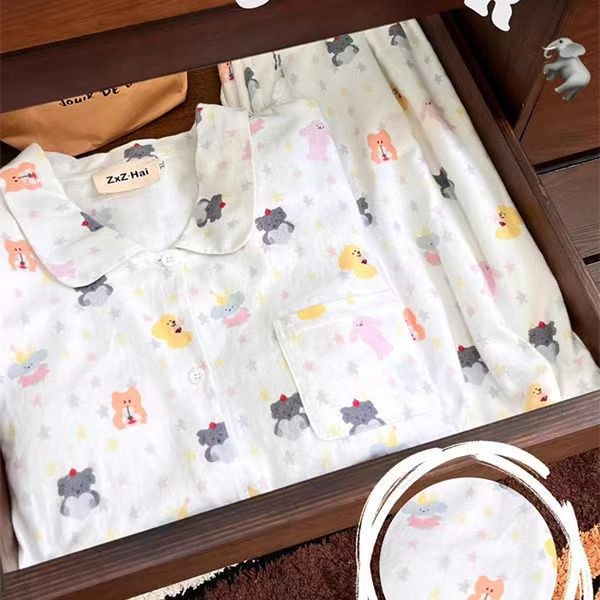 Главная страница > Новые милые пижамы с маленькими животными и звездами для женщин, весенне-осенний брючный костюм с длинными рукавами, студенческая домашняя одежда
