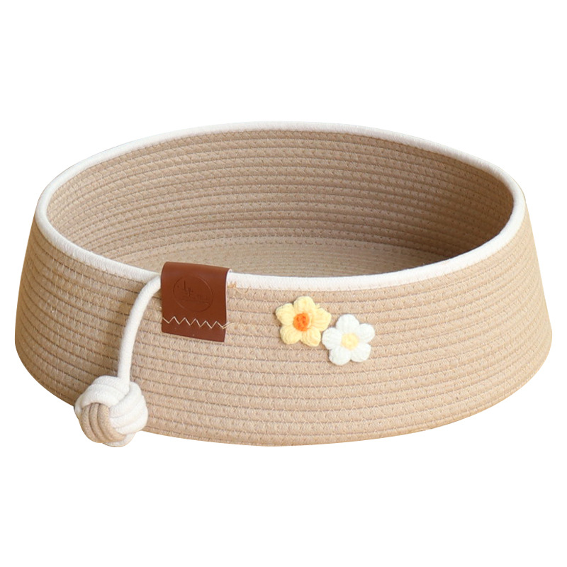 - Кошачье гнездо, маленький цветочный стиль хаки + белый ватный диск