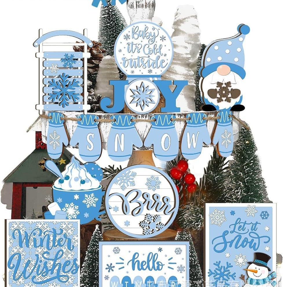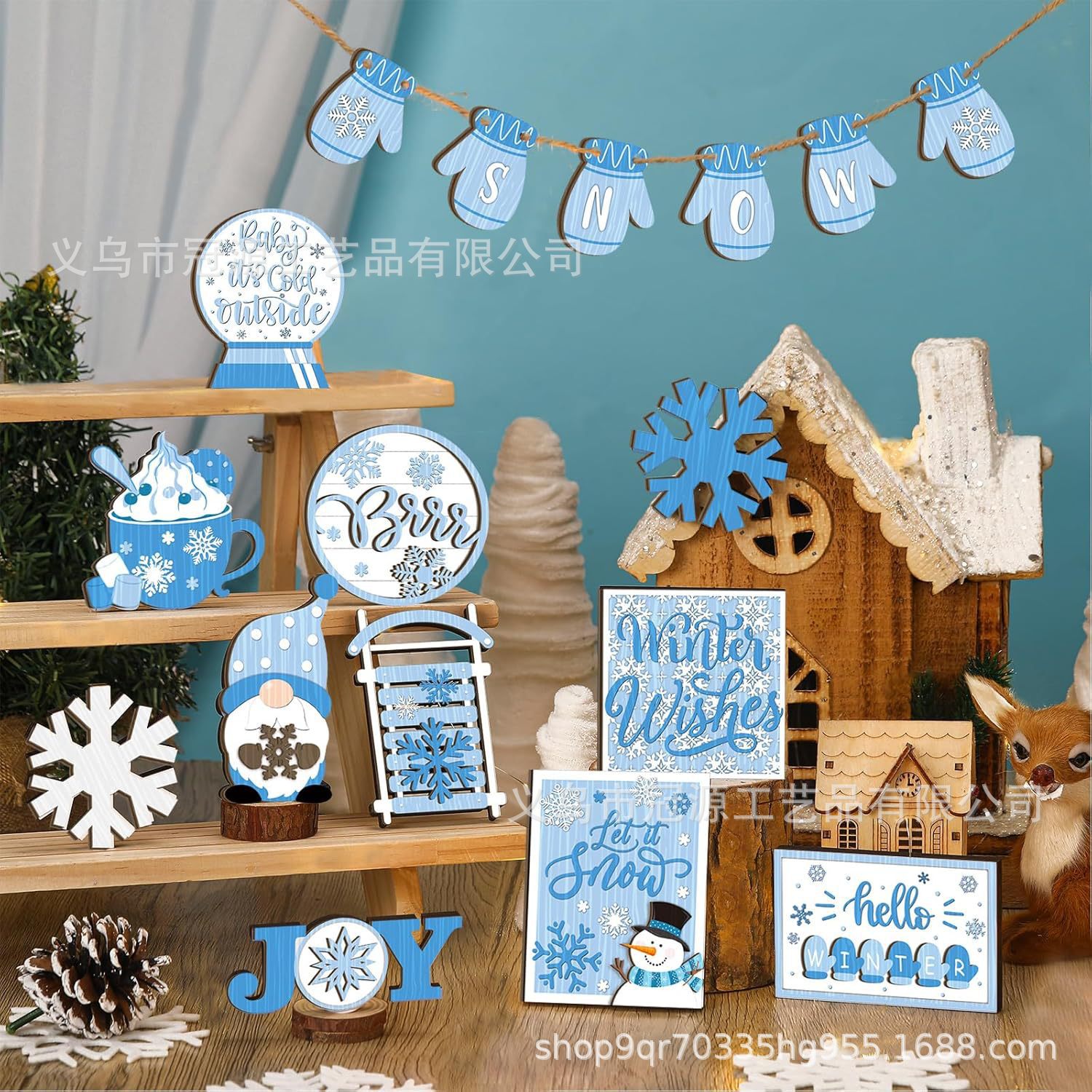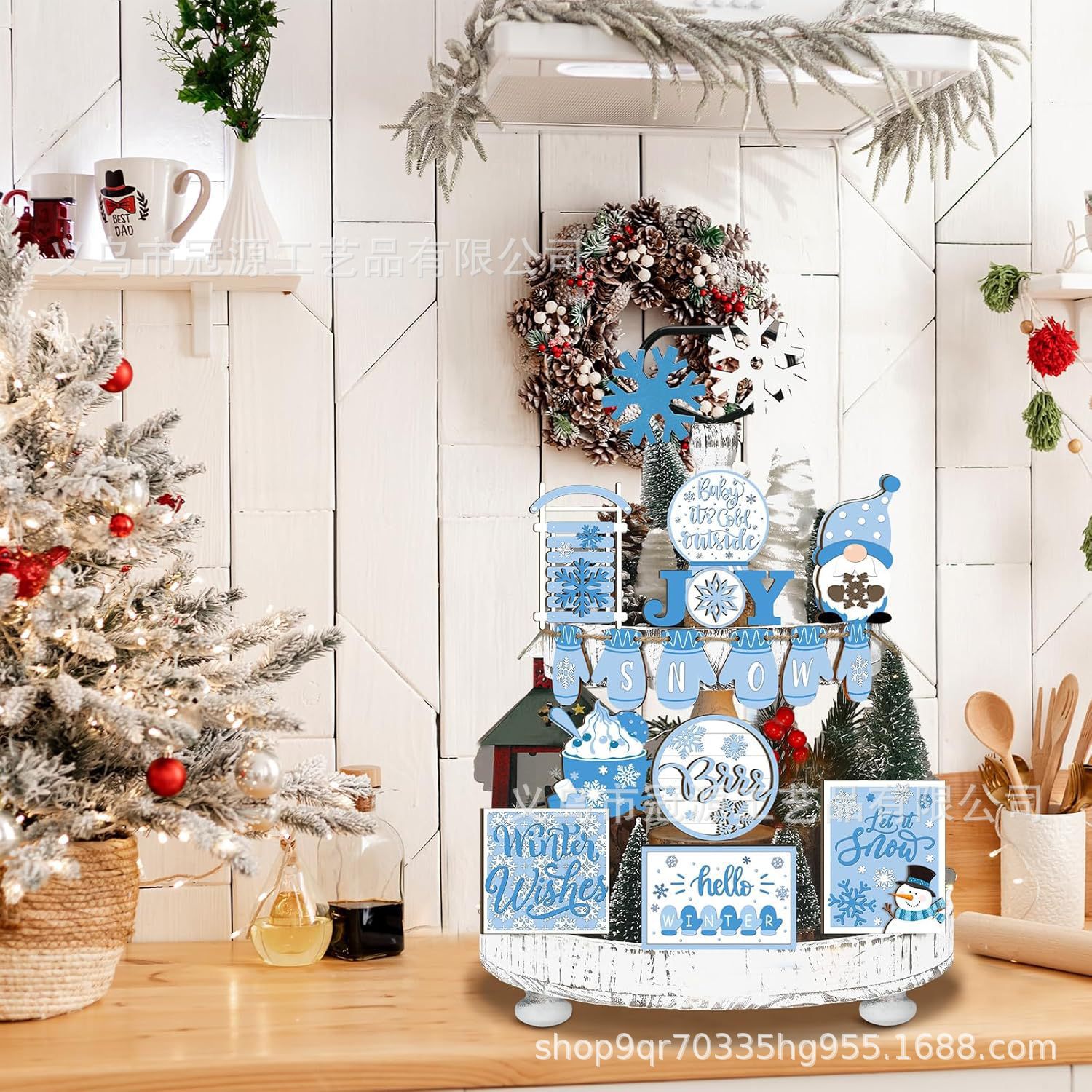 Главная страница > Трансграничный рождественский снеговик зимний многослойный поднос декоративное освещение фермерский дом синий снежинка рождественский стол украшения украшения украшения