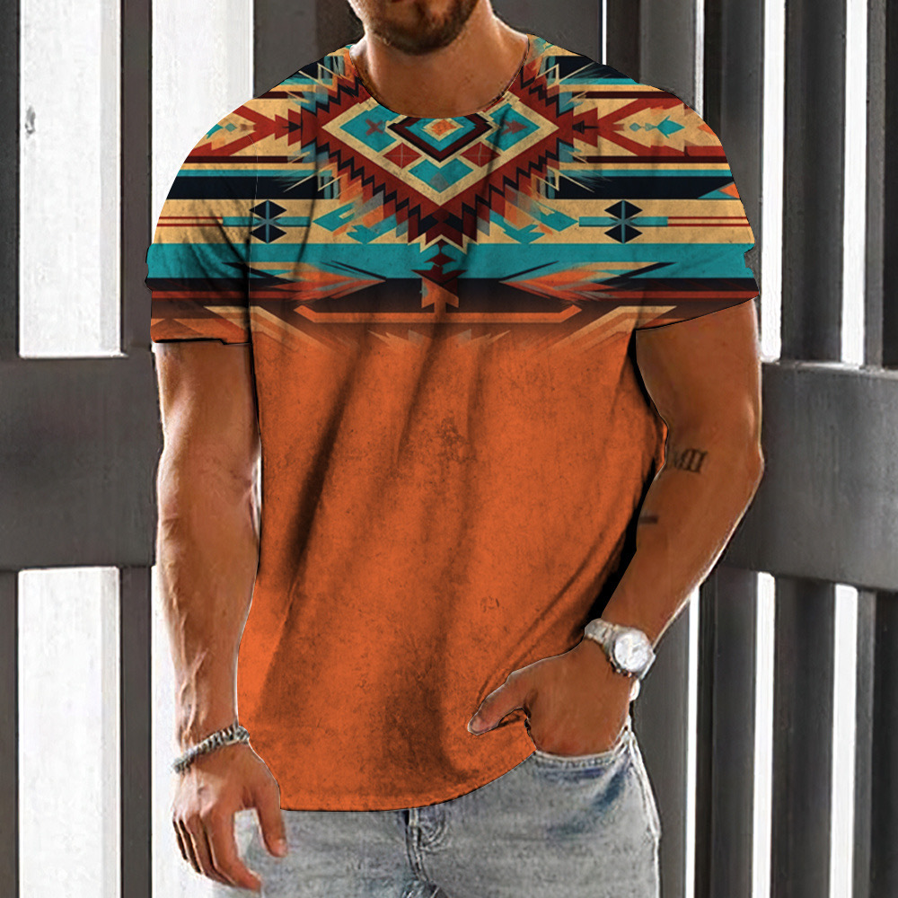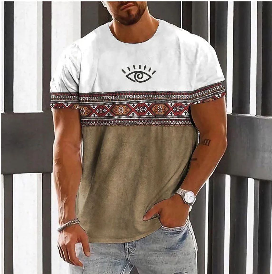 Главная страница > Новая Европейская и американская трансграничная модная футболка, мужская Свободная Повседневная Базовая куртка с короткими рукавами в этническом стиле для отдыха, внешней торговли