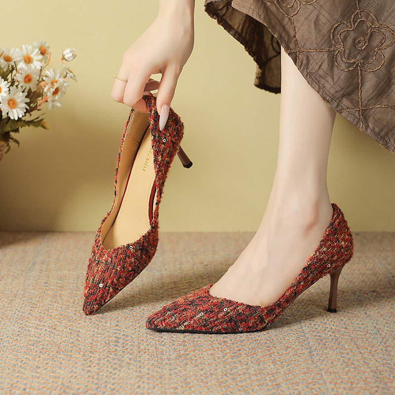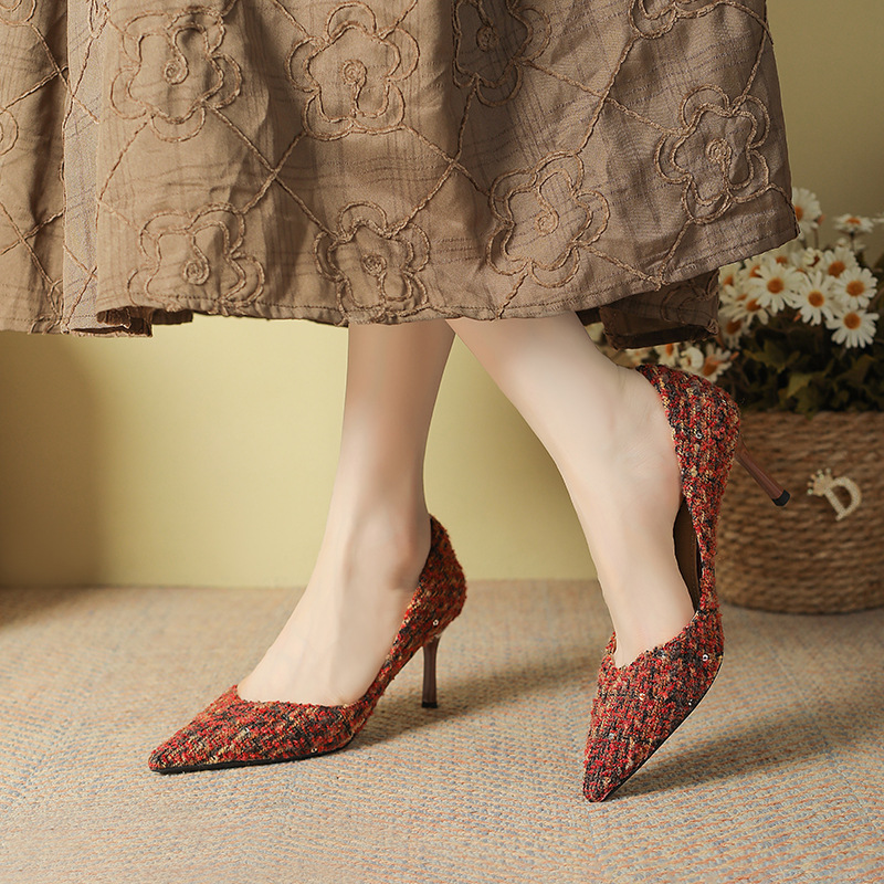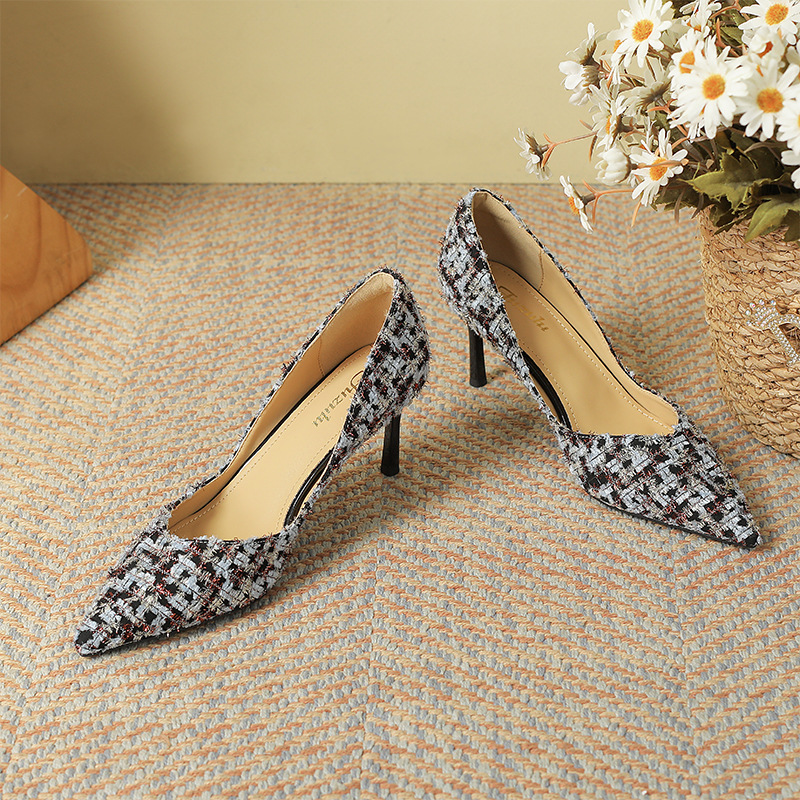 Главная страница > Твидовые стильные сексуальные туфли на высоком каблуке с острым носком для женщин, весна-лето 2025, новый стиль, модные женские туфли на высоком каблуке, которые не утомляют ноги.