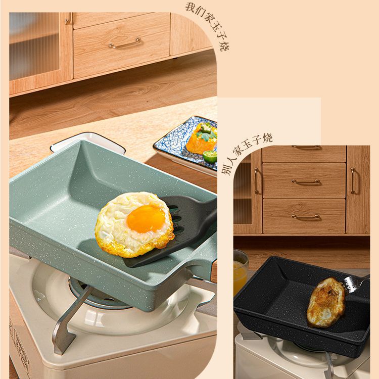 Главная страница > Квадратная Мини-Сковорода с антипригарным покрытием Юзи в японском стиле Маленькая сковорода для завтрака с плоским дном из толстого жареного яйца Maifan Stone