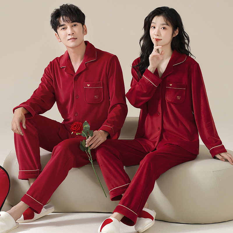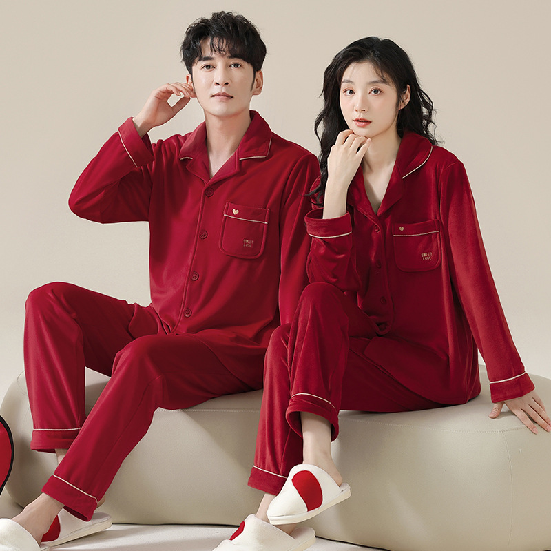 Главная страница > Sea Island бархатная пара пижамы Осень и зима Красная свадьба год рождения утолщенный теплый женский коралловый бархатный домашний костюм