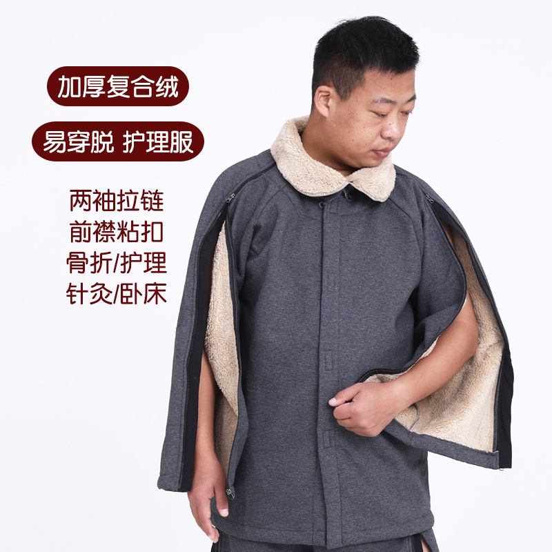 Мужская парализованная одежда для пожилых людей с пряжкой на молнии, легко носить и снимать, зимняя одежда для ортопедической хирургии на флисовой подкладке, стационарная реабилитация, одежда для кормления