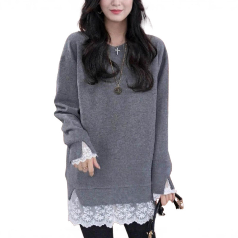 Главная страница > Новые кружевные топы с длинными рукавами для женщин, корейский стиль, модные, свободные, тонкие и универсальные толстовки и нижние рубашки.