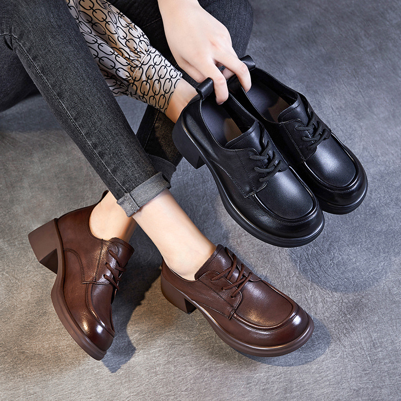 Главная страница > Туфли на высоком каблуке Женская осень 2024 Новый кожаный туфли на каблуке Удобные черные туфли на толстой подошве маленькие кожаные туфли