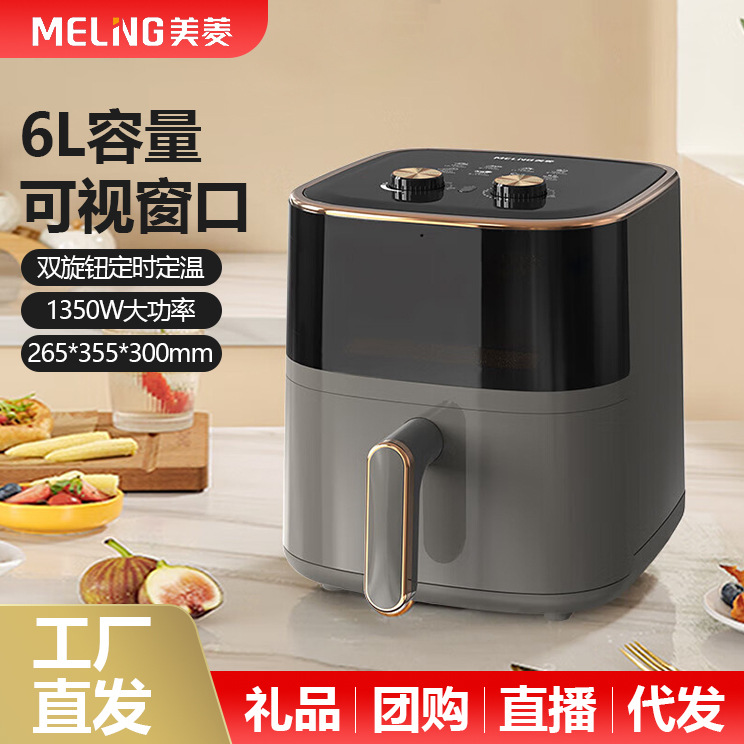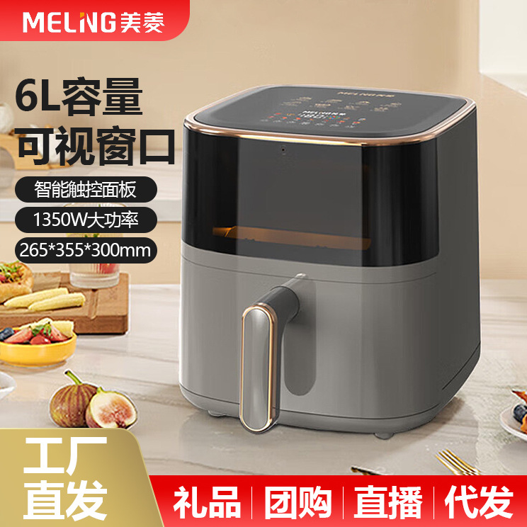 Фритюрница Meiling с двойной ручкой управления, 6 л, бытовая полностью автоматическая сенсорная интеллектуальная безмасляная электрическая фритюрница, новая модель 2025 года
