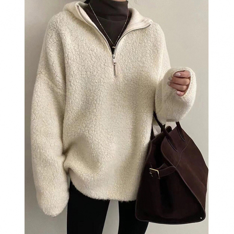 Главная страница > Ленивый ветер с капюшоном на молнии свитер женский осенний и зимний новый толстый свободный ленивый мягкий вязаный топ