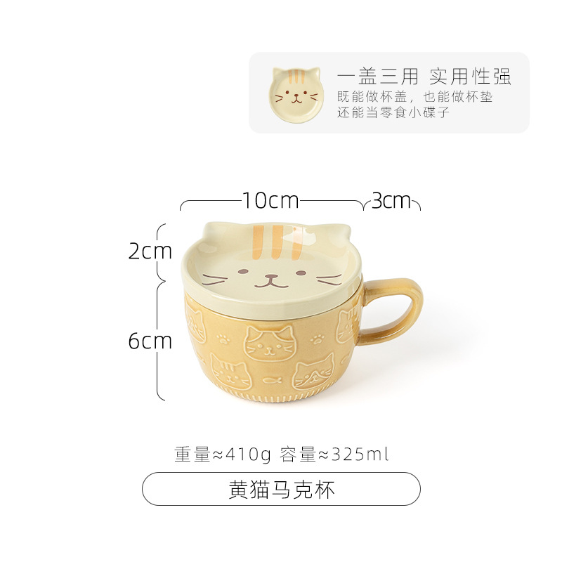 Маленькая керамическая чашка с крышкой Кофейная чашка Бытовая японская мультяшная кружка Чашка для воды Чашка для молока Чашка для завтрака