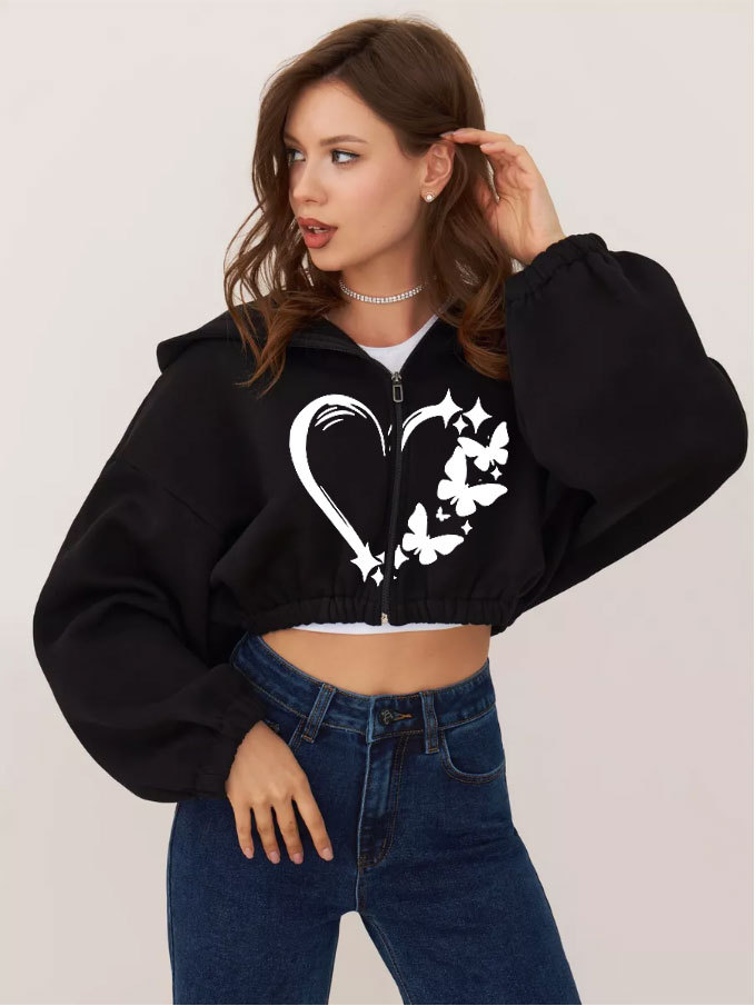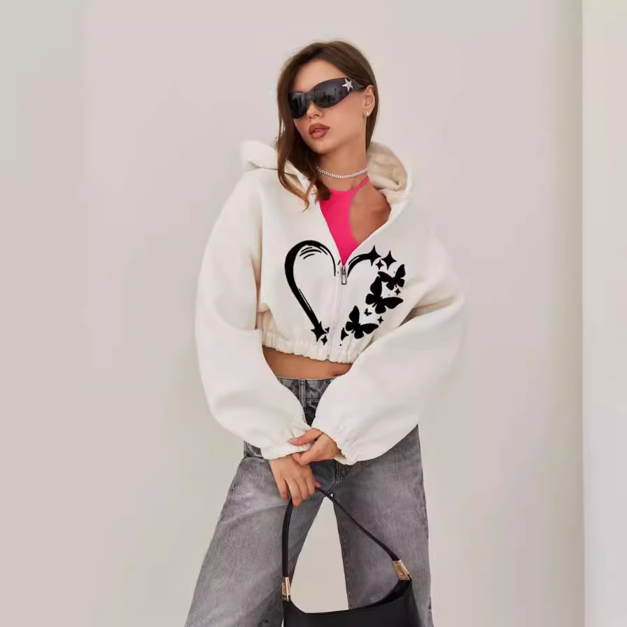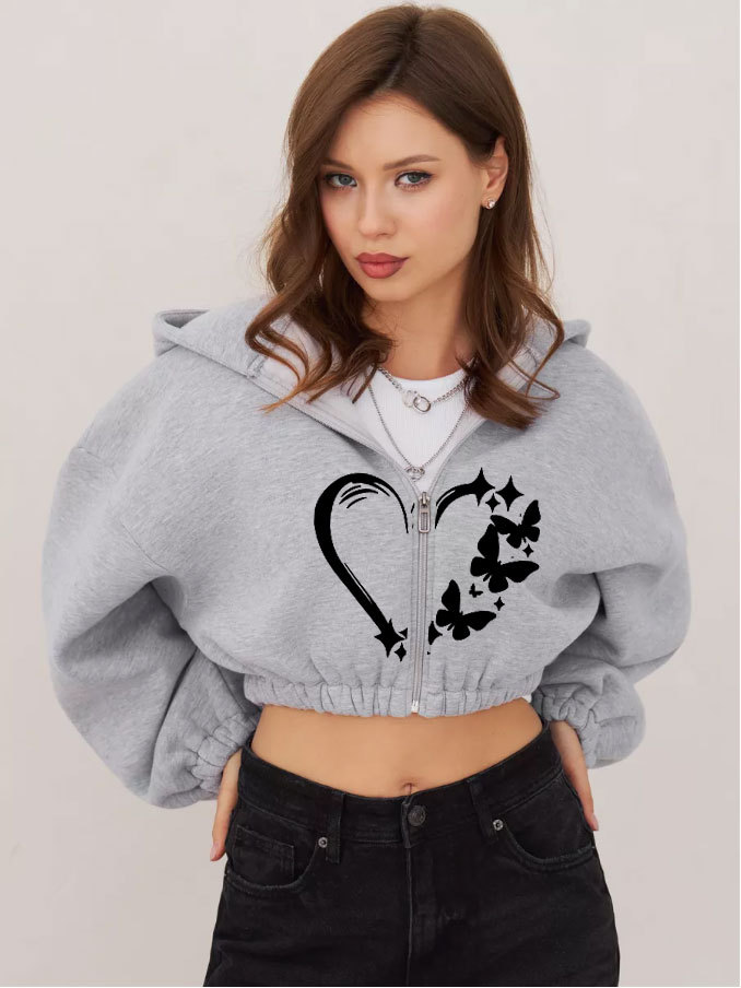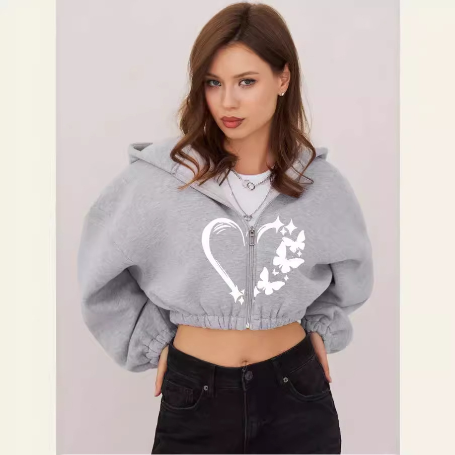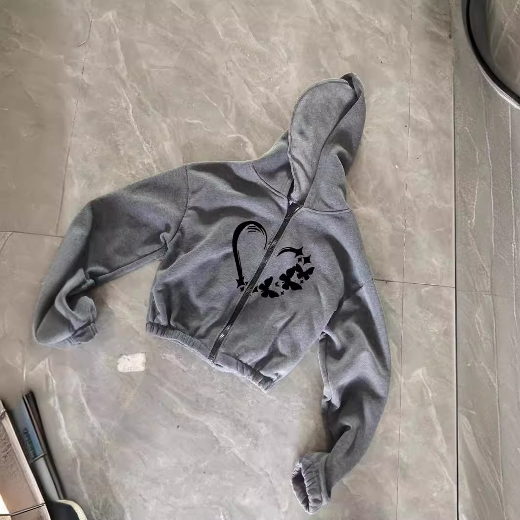 Темная толстовка толстовка готика пара Харадзюку большой размер пупок любовь бабочка принт свитер на молнии