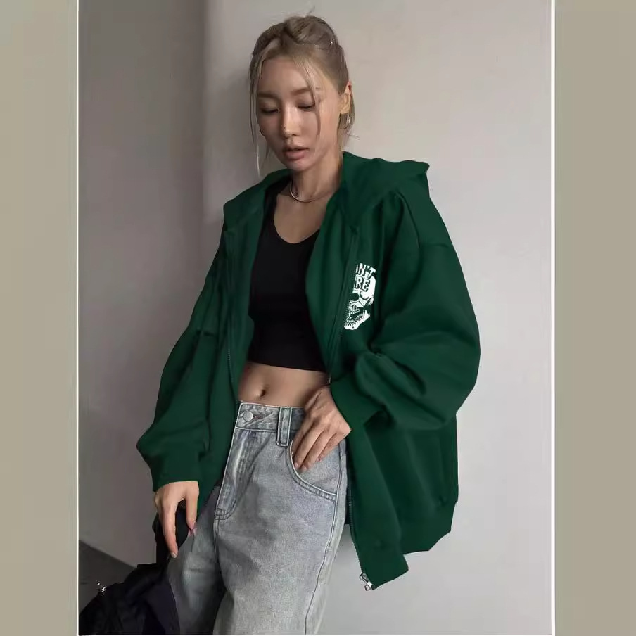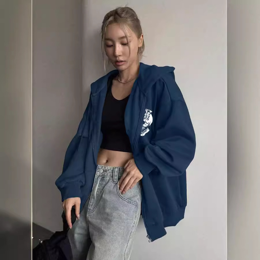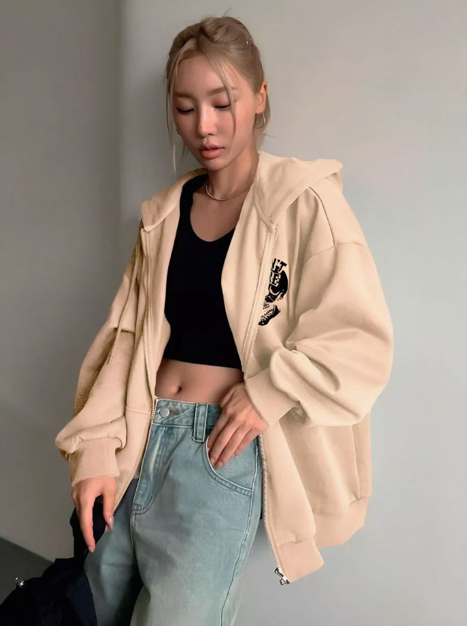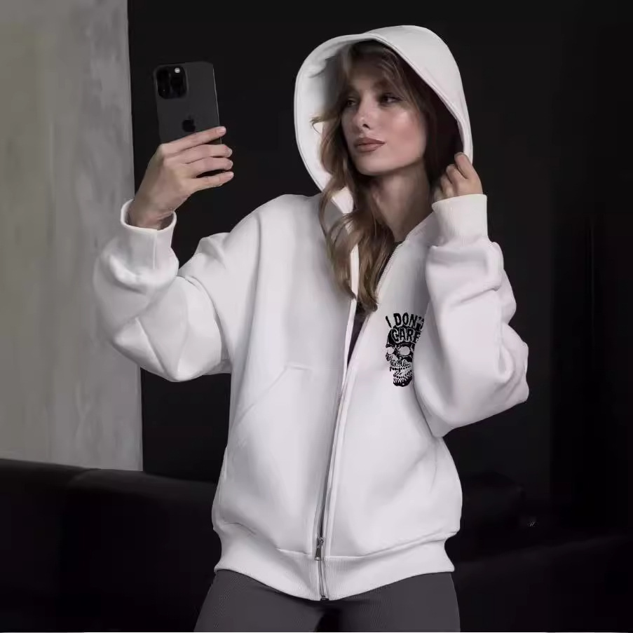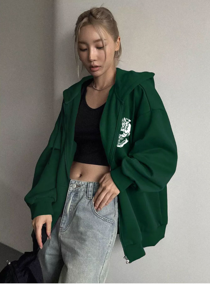 Темные толстовки толстовки готические пары Харадзюку большой размер застежки-молнии с принтом черепа свитер