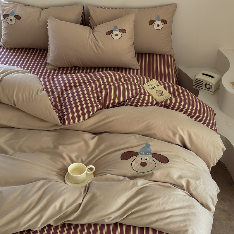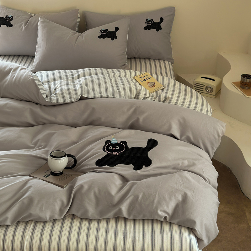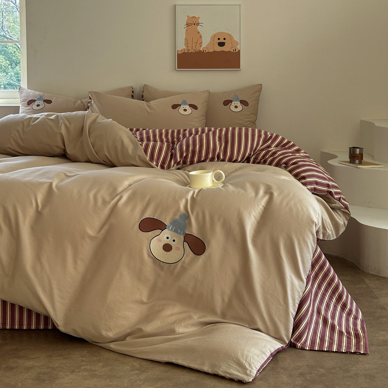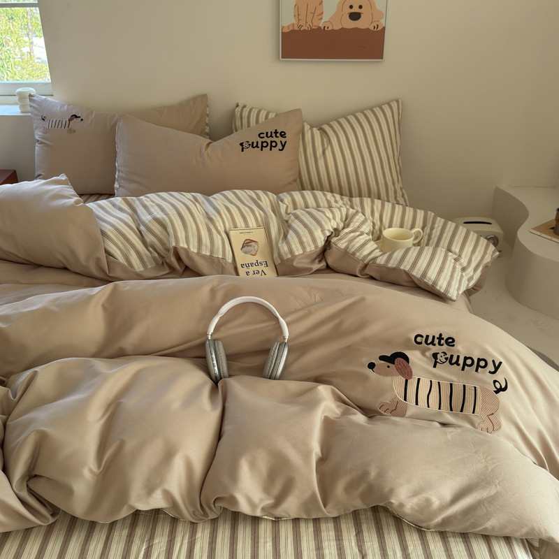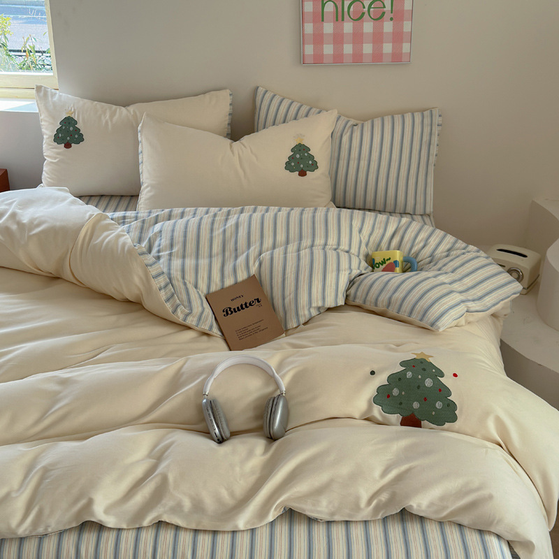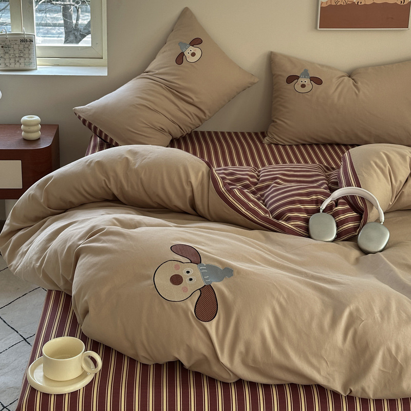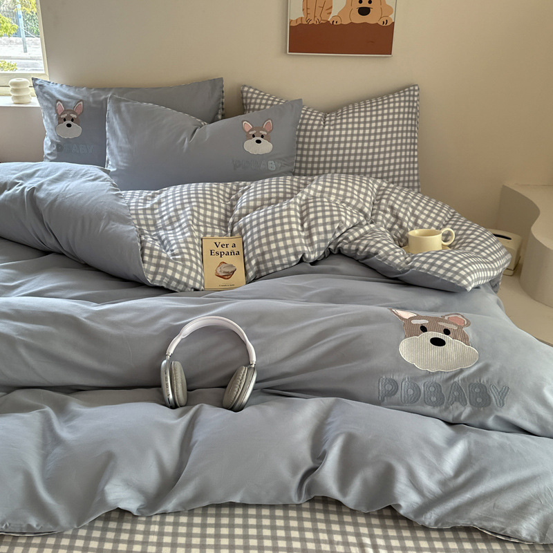 - Комплект из четырех предметов простыни 1,5 м, пододеяльник 200x230 см.