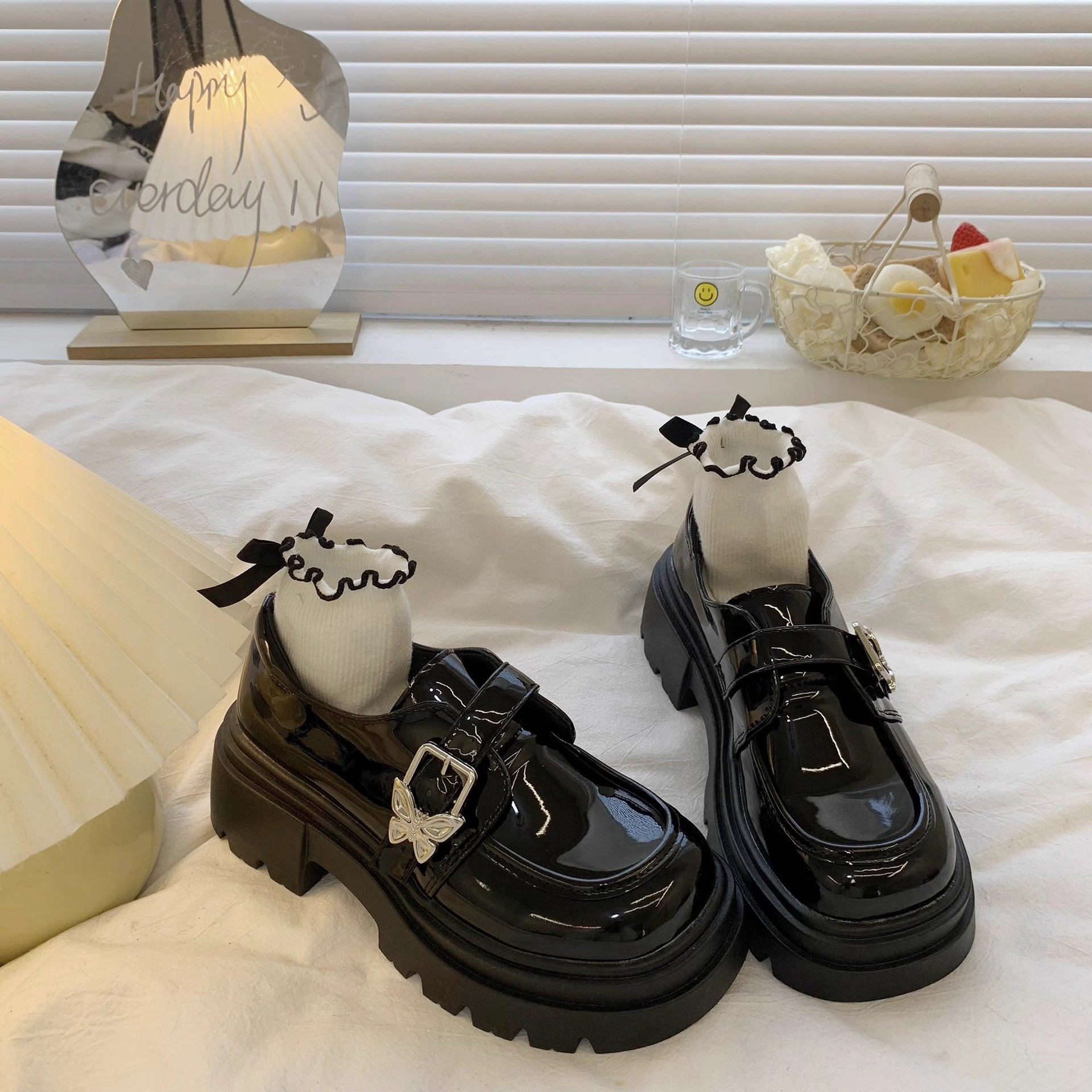 Главная страница > Женские черные кожаные туфли в японском стиле для студенток 2025, новые блестящие лоферы с бантом и пряжкой, туфли Мэри Джейн на платформе