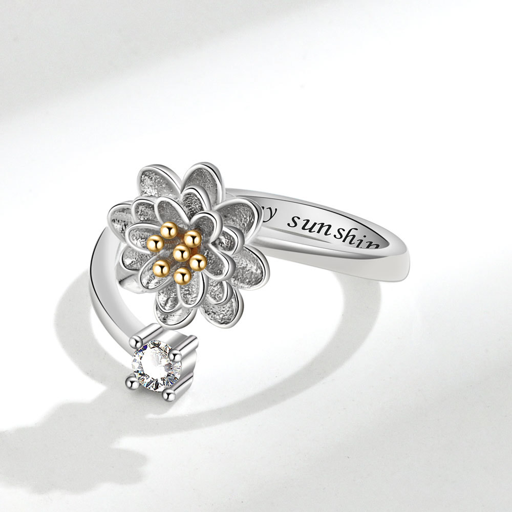 Главная страница > Маленькое вращающееся кольцо с ромашкой, женское инкрустированное цирконом, японское и корейское свежее и освежающее модное кольцо, встряхивающийся тон, быстрая рука, живые взрывы