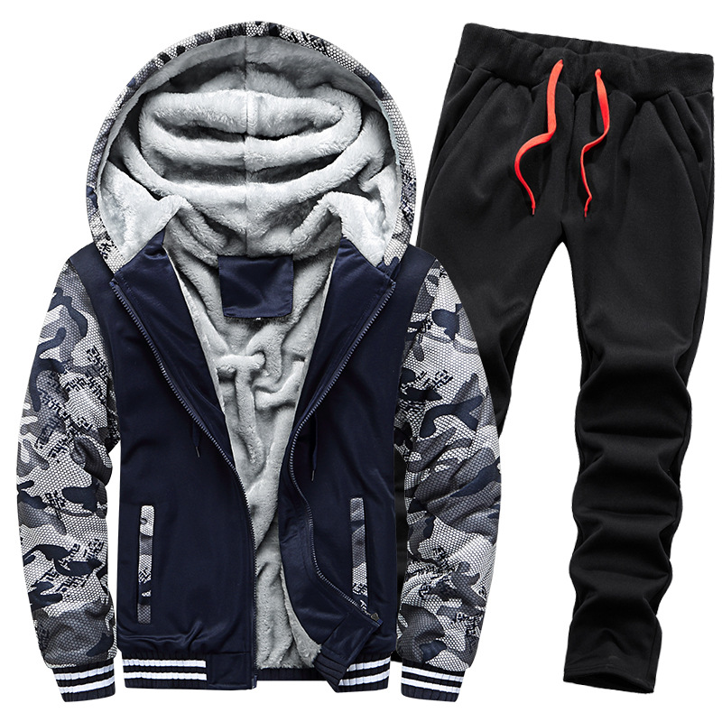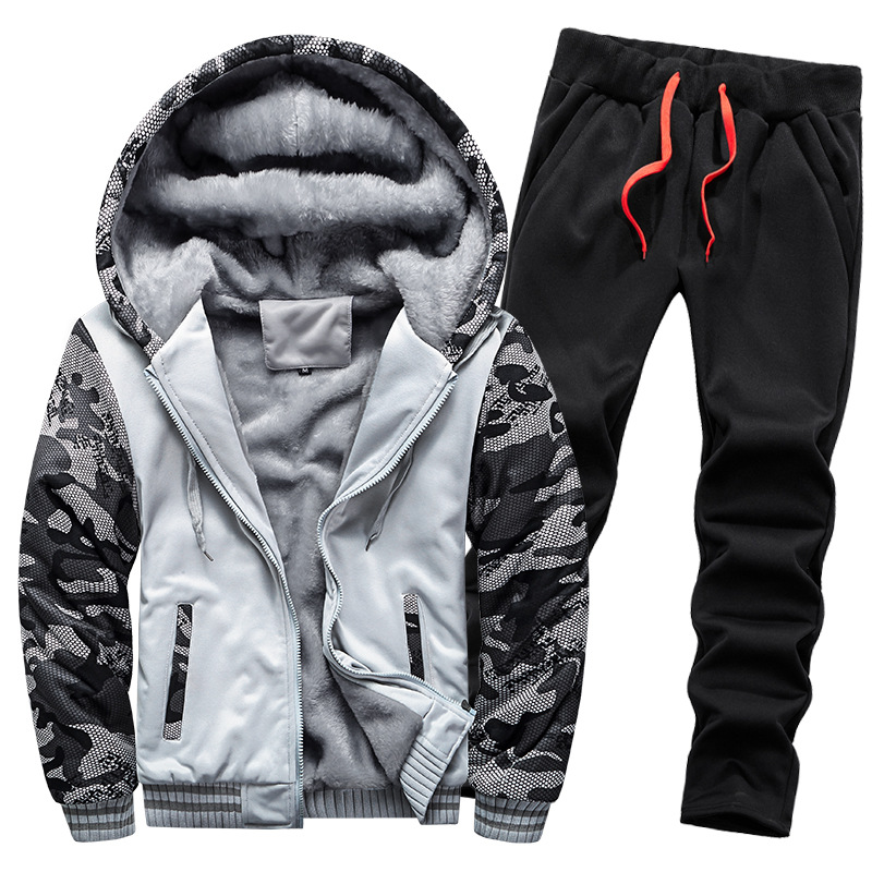 Главная страница > Свитер на флисовой подкладке для внешней торговли, мужской утолщенный теплый кардиган, комплект из двух предметов, осенне-зимняя спортивная повседневная мужская одежда с капюшоном