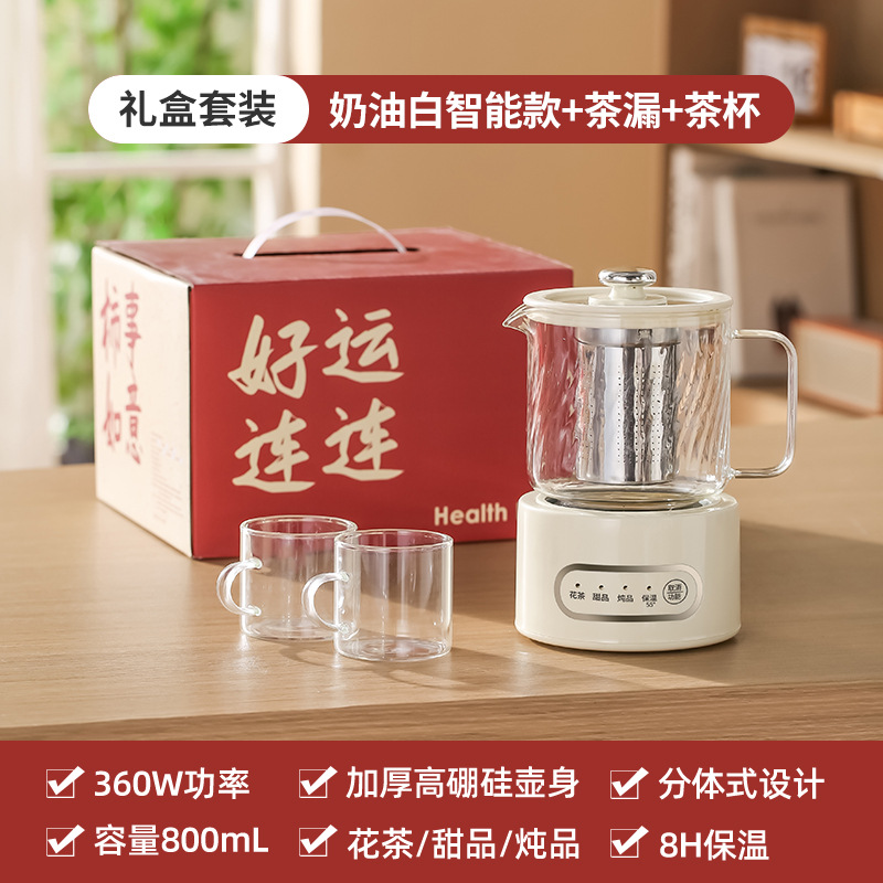 HE299 саржа-0,8л-молочно-белый-умный одинарный горшок+фильтр+2 чашки+основа